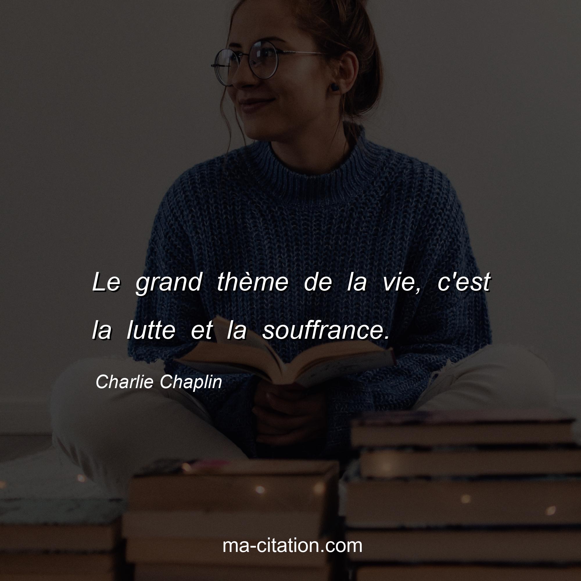Citation sur la vie de Charlie Chaplin :Le grand thème de la vie, c'est la lutte et la souffrance.