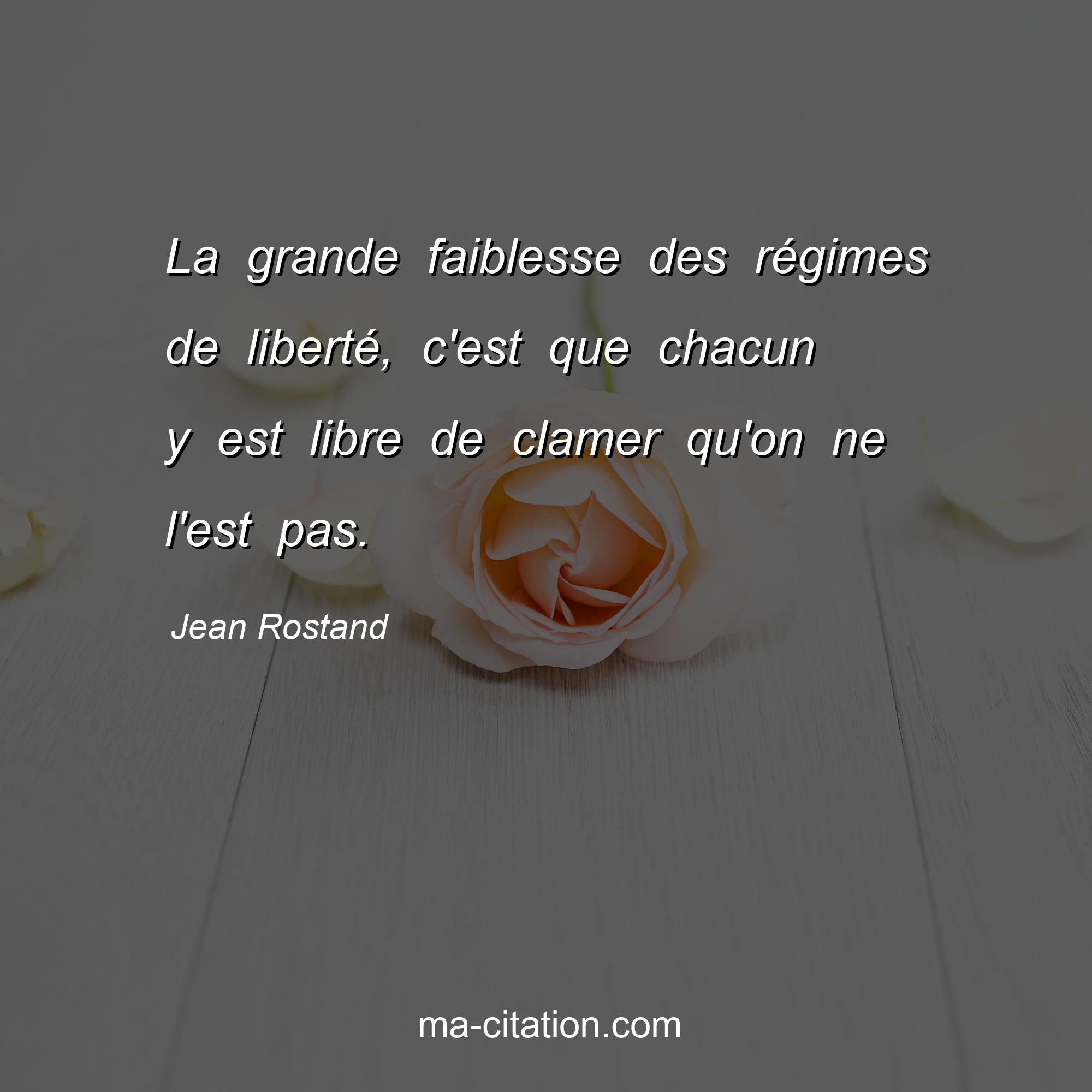 Citation sur la vie de Jean Rostand :La grande faiblesse des régimes de liberté, c'est que chacun y est libre de clamer qu'on ne l'est pas.