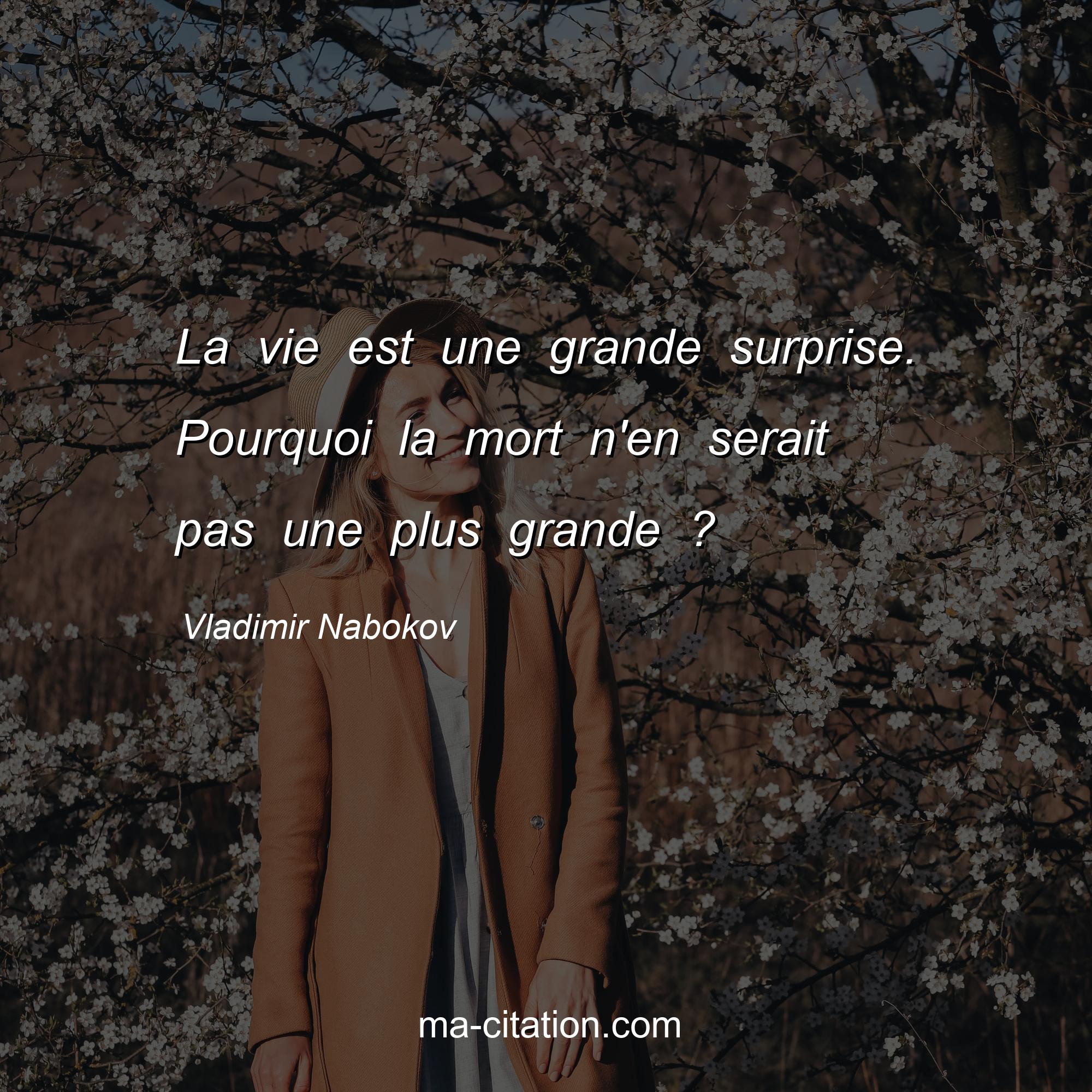 Citation sur la vie de Vladimir Nabokov :La vie est une grande surprise. Pourquoi la mort n'en serait pas une plus grande ?