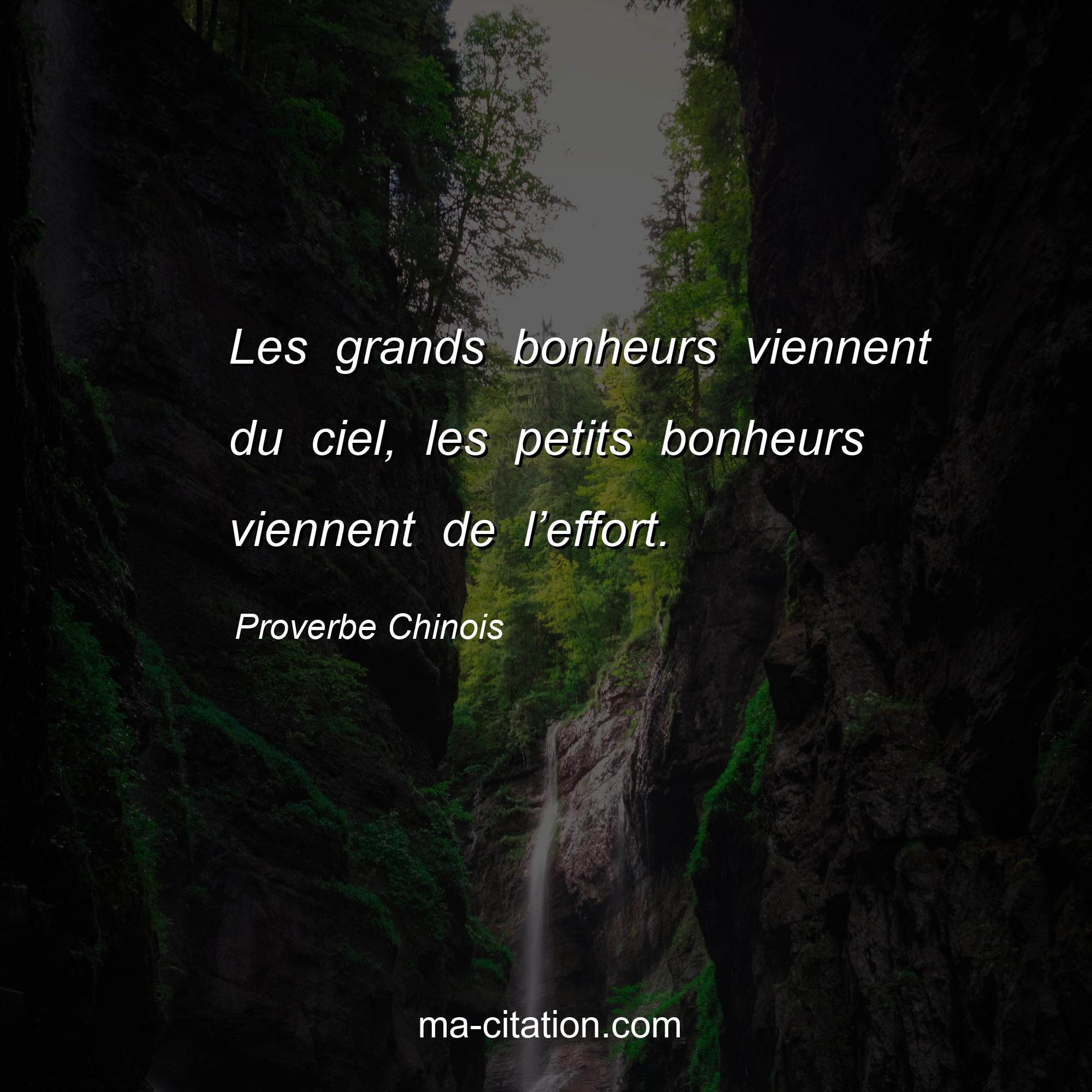 Proverbe Chinois sur la vie :Les grands bonheurs viennent du ciel, les petits bonheurs viennent de l’effort.