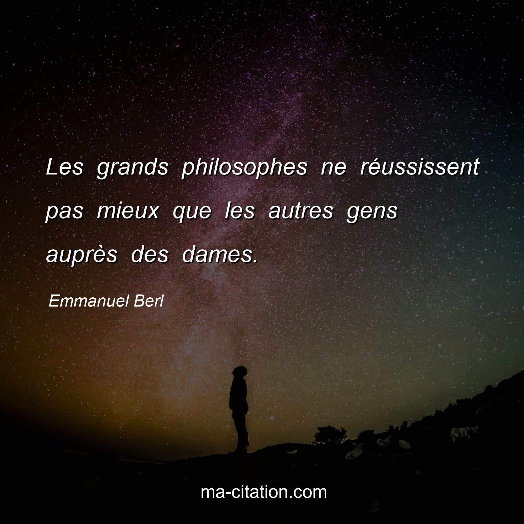 Citation sur la vie d'Emmanuel Berl :Les grands philosophes ne réussissent pas mieux que les autres gens auprès des dames.