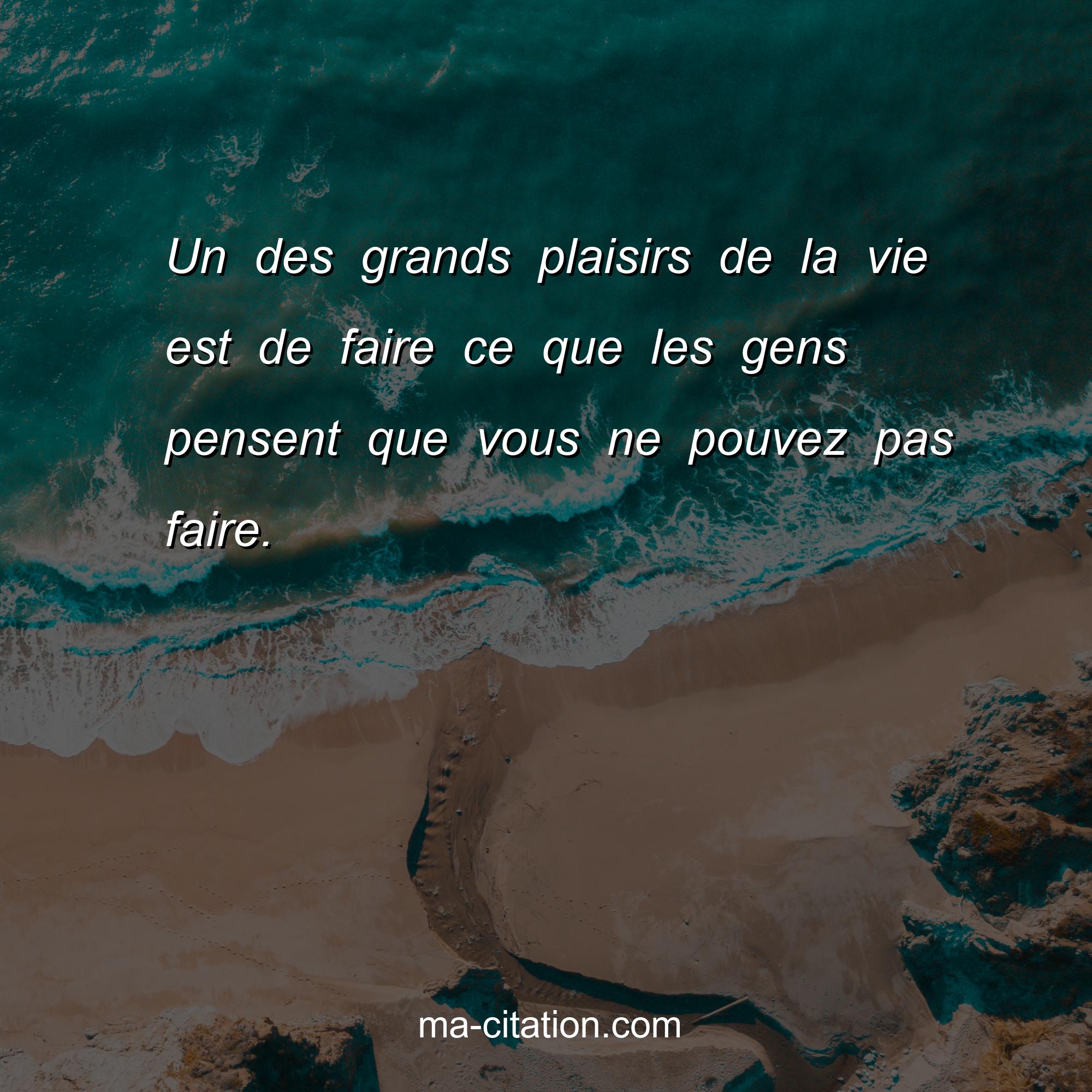 Citation sur la vie :Un des grands plaisirs de la vie est de faire ce que les gens pensent que vous ne pouvez pas faire.