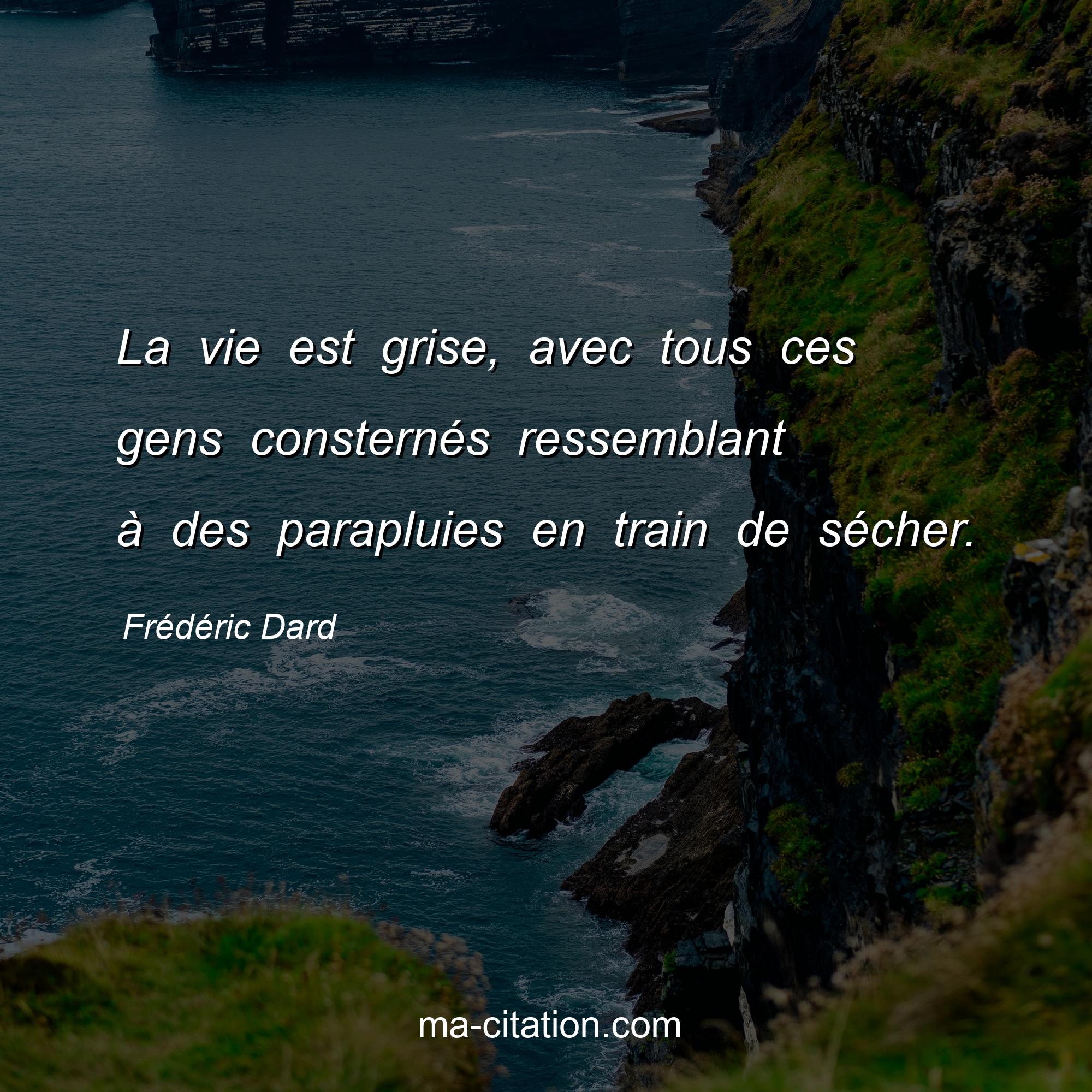 Citation sur la vie de Frédéric Dard :La vie est grise, avec tous ces gens consternés ressemblant à des parapluies en train de sécher.
