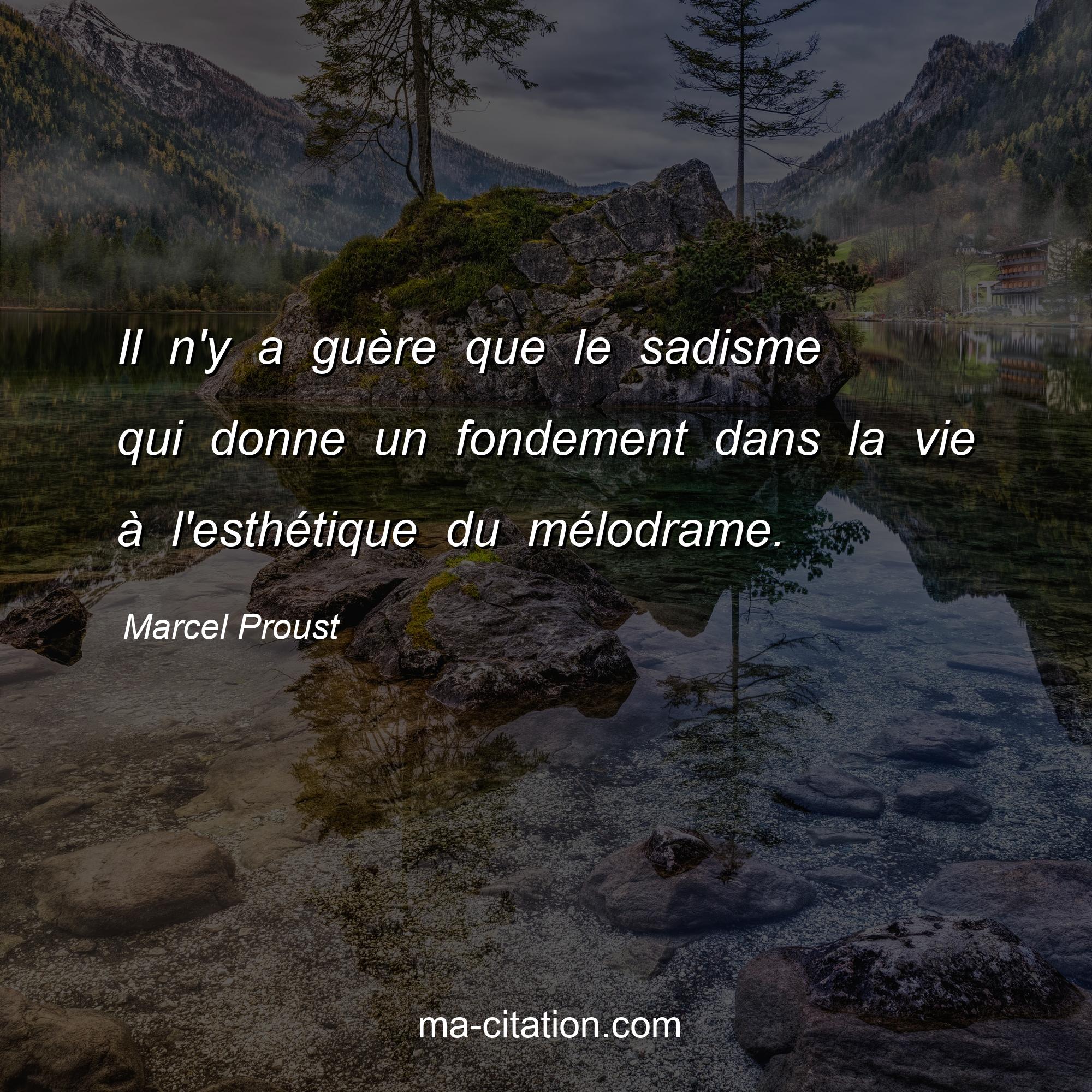 Citation sur la vie de Marcel Proust :Il n'y a guère que le sadisme qui donne un fondement dans la vie à l'esthétique du mélodrame.