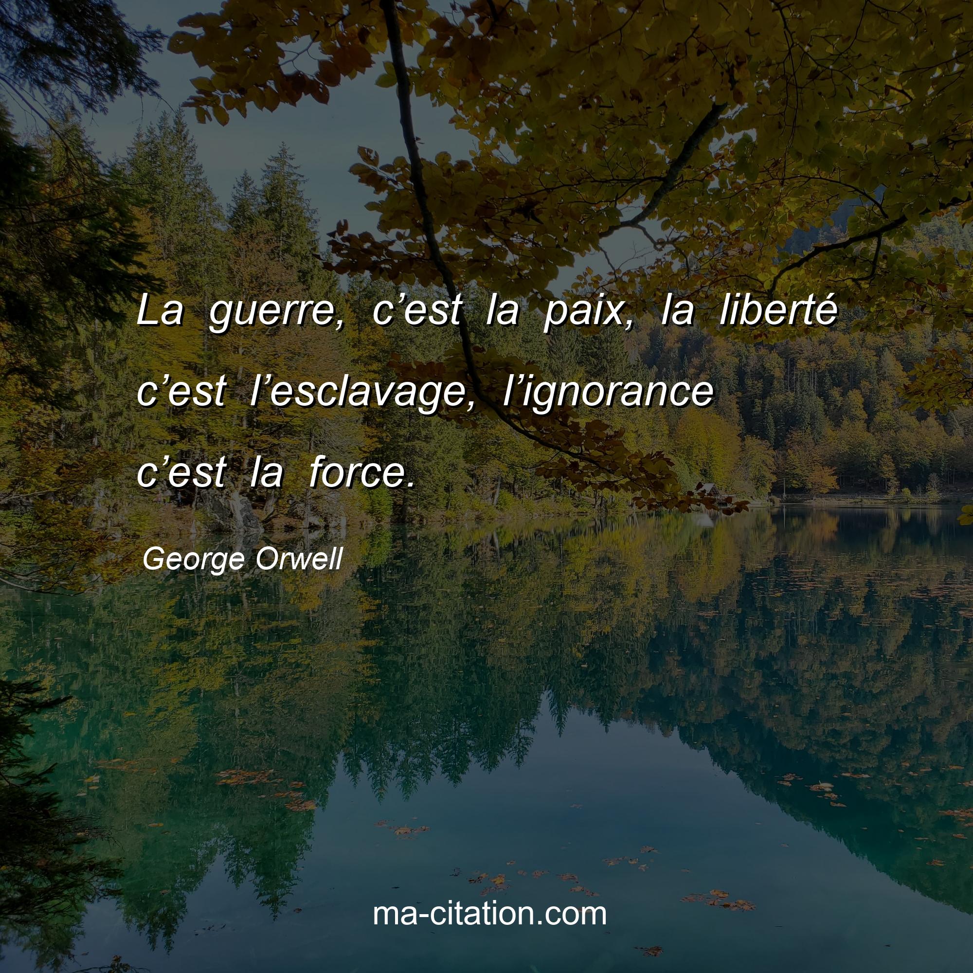 Citation sur la vie de George Orwell :La guerre, c’est la paix, la liberté c’est l’esclavage, l’ignorance c’est la force.