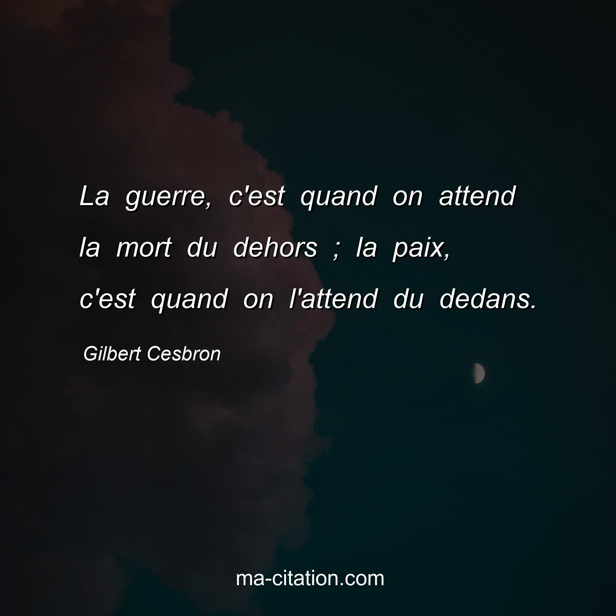 Citation sur la vie de Gilbert Cesbron :La guerre, c'est quand on attend la mort du dehors ; la paix, c'est quand on l'attend du dedans.