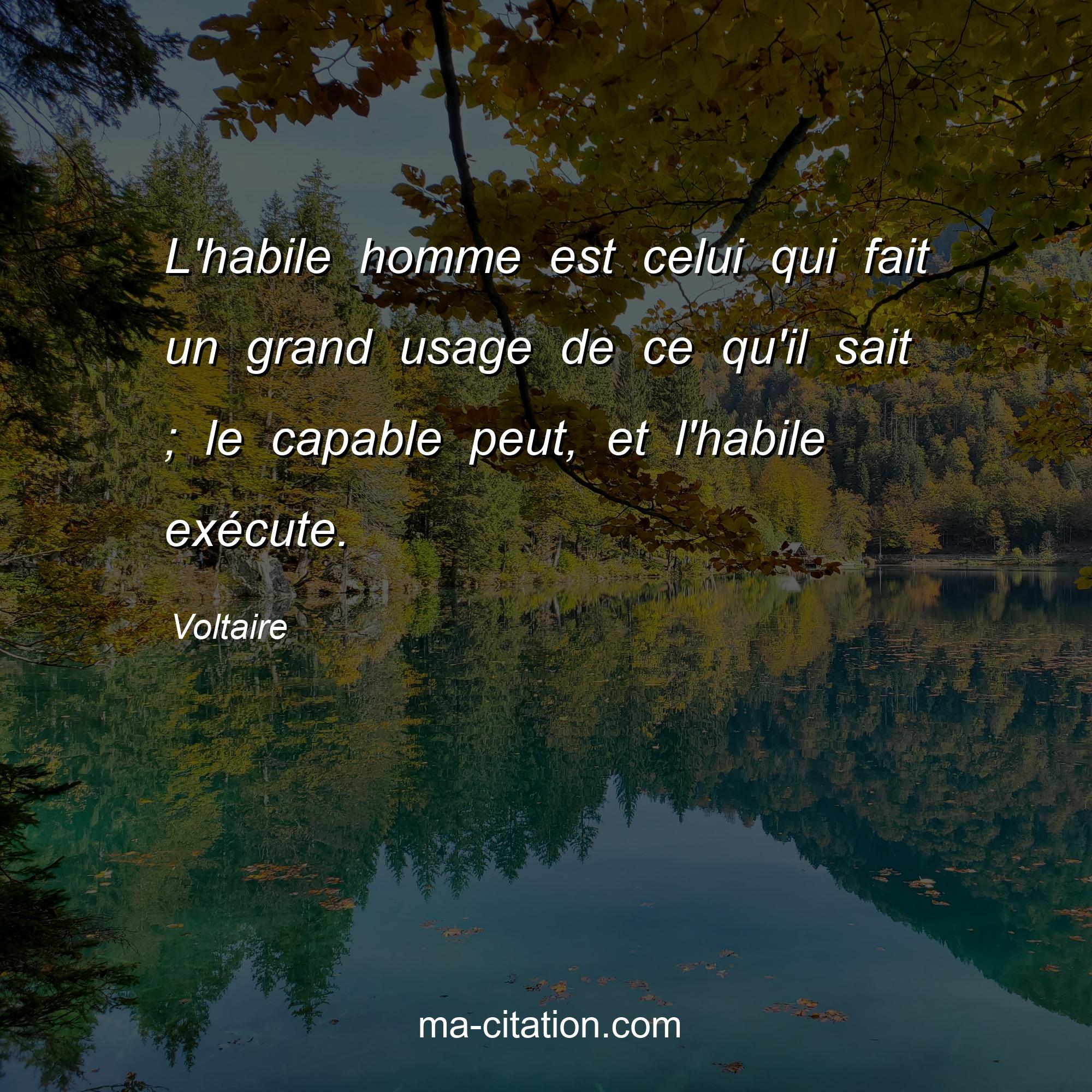 Citation sur la vie de Voltaire :L'habile homme est celui qui fait un grand usage de ce qu'il sait ; le capable peut, et l'habile exécute.
