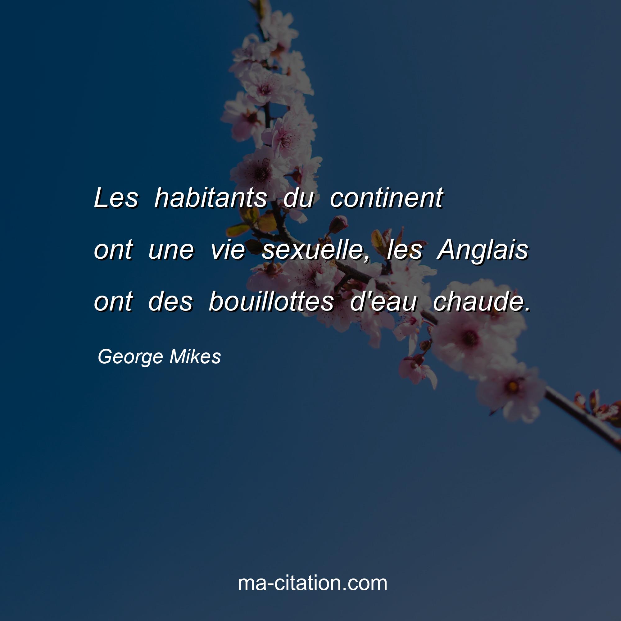 Citation sur la vie de George Mikes :Les habitants du continent ont une vie sexuelle, les Anglais ont des bouillottes d'eau chaude.