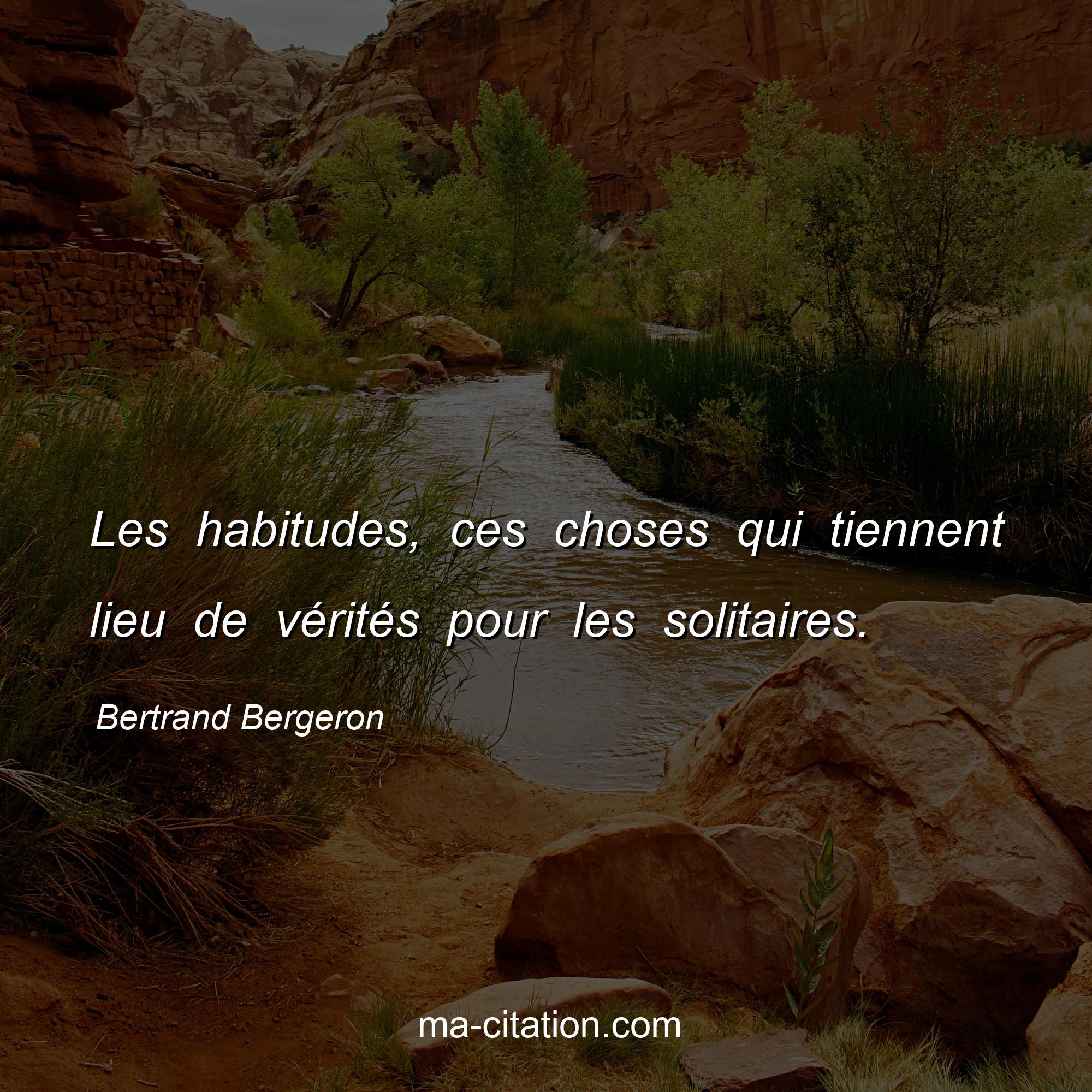 Citation sur la vie de Bertrand Bergeron :Les habitudes, ces choses qui tiennent lieu de vérités pour les solitaires.