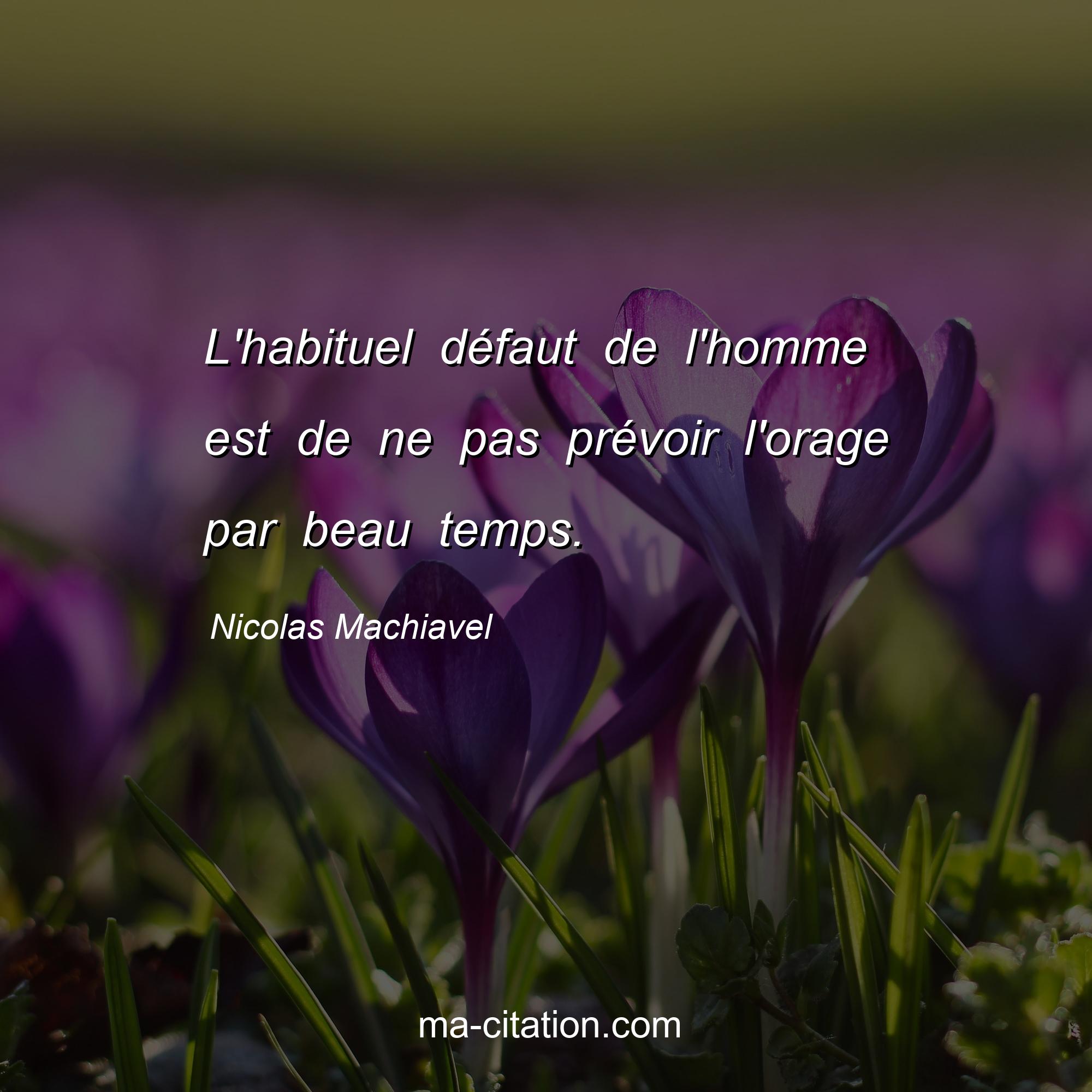Citation sur la vie de Nicolas Machiavel :L'habituel défaut de l'homme est de ne pas prévoir l'orage par beau temps.