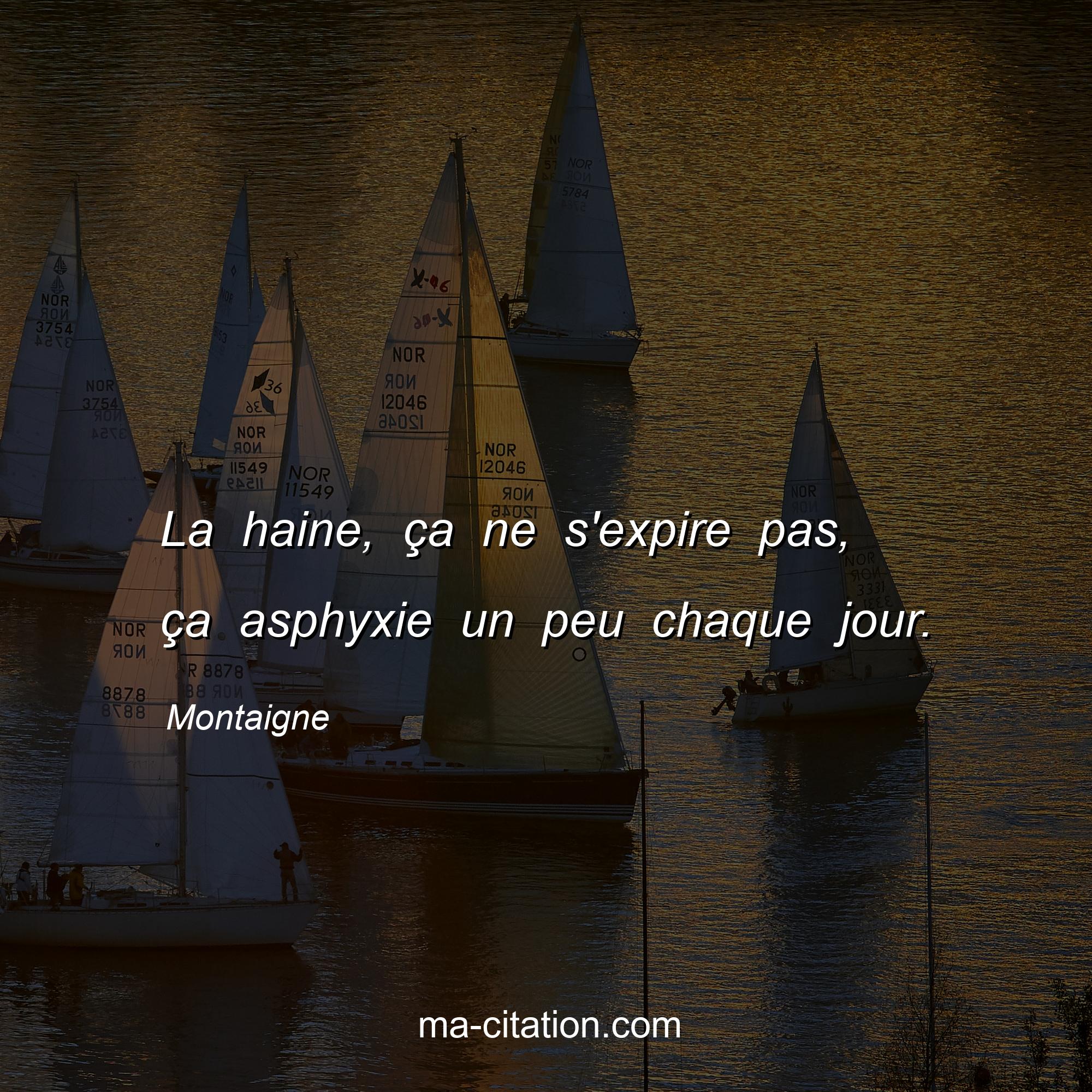 Montaigne est l'auteur de la citation sur la vie "La haine, ça ne s'expire pas, ça asphyxie un peu chaque jour.".