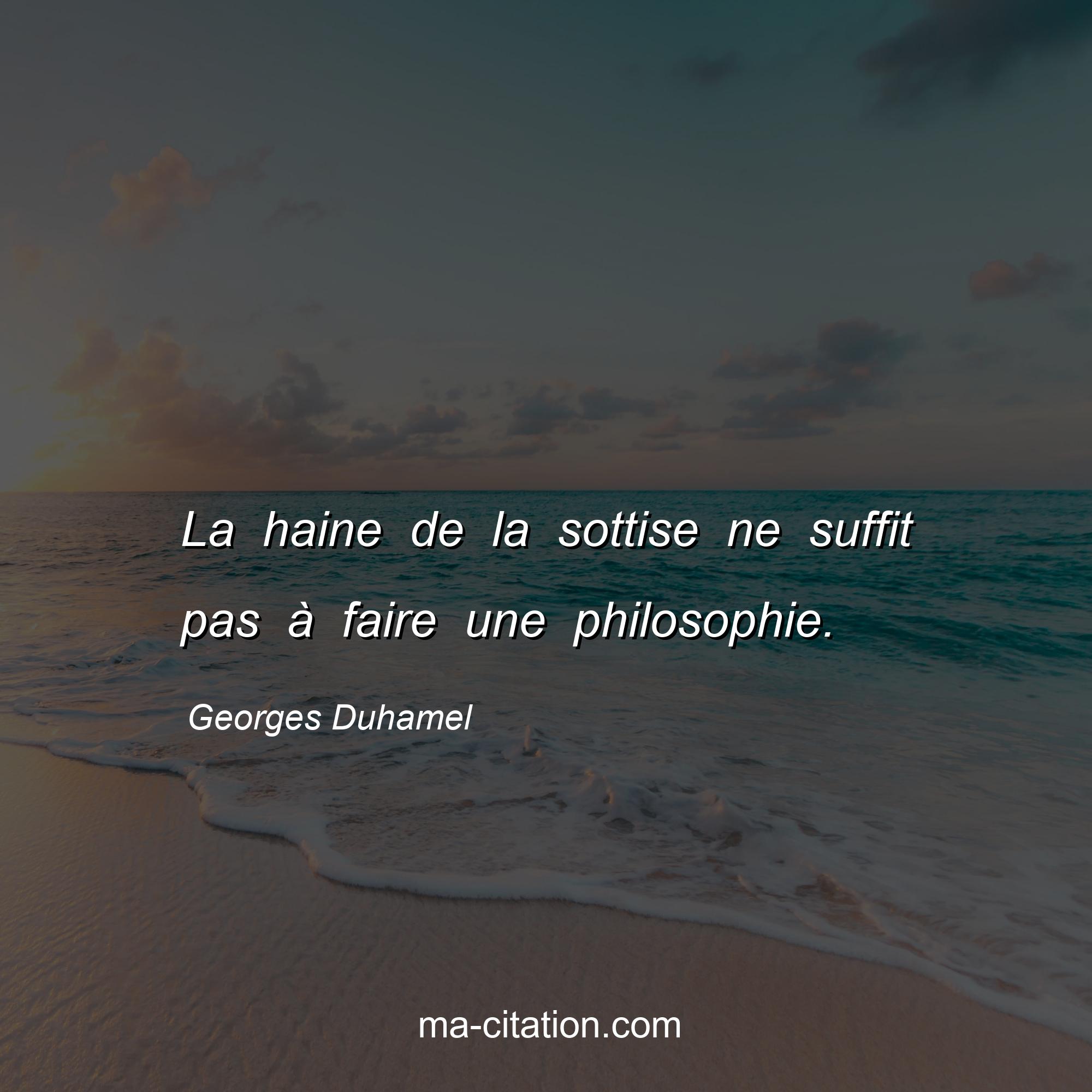Citation sur la vie de Georges Duhamel :La haine de la sottise ne suffit pas à faire une philosophie.