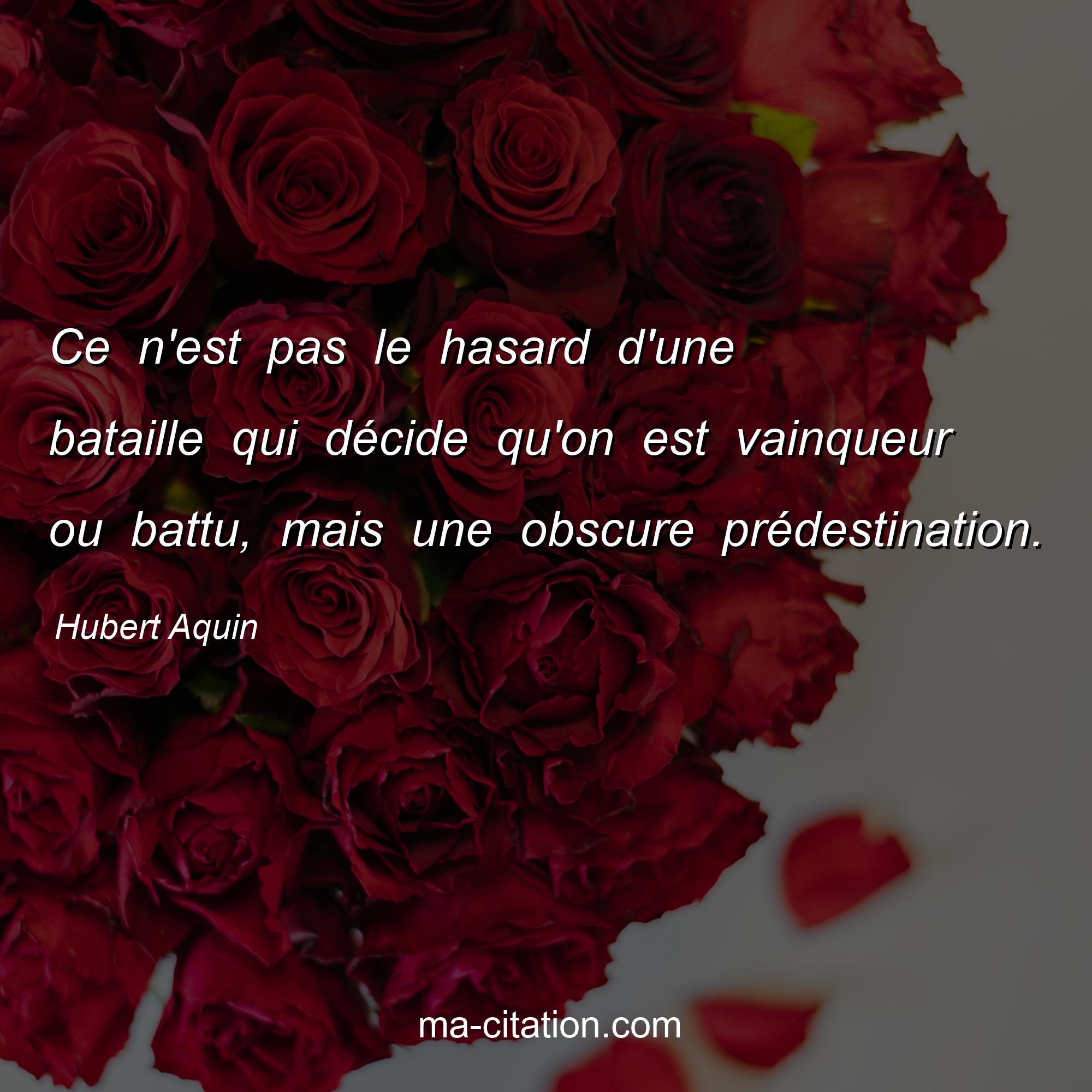 Citation sur la vie de Hubert Aquin :Ce n'est pas le hasard d'une bataille qui décide qu'on est vainqueur ou battu, mais une obscure prédestination.