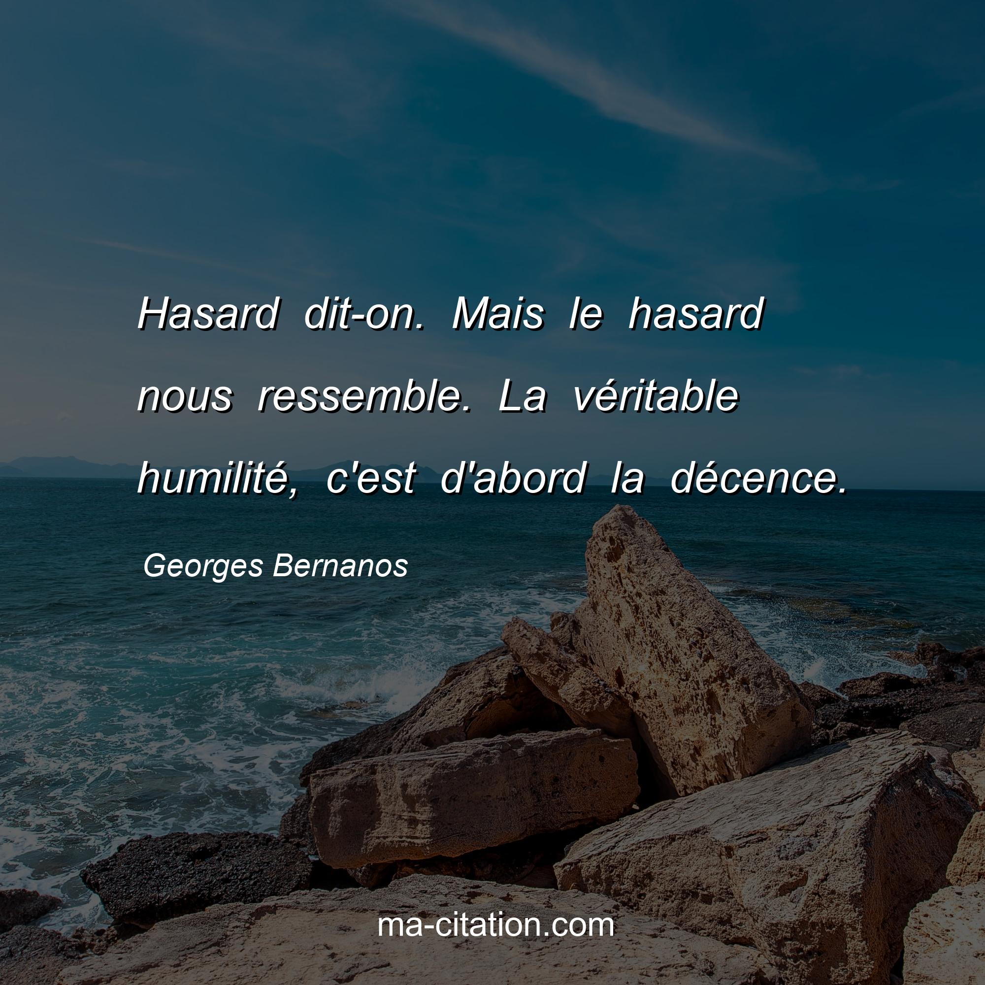 Citation sur la vie de Georges Bernanos :Hasard dit-on. Mais le hasard nous ressemble. La véritable humilité, c'est d'abord la décence.