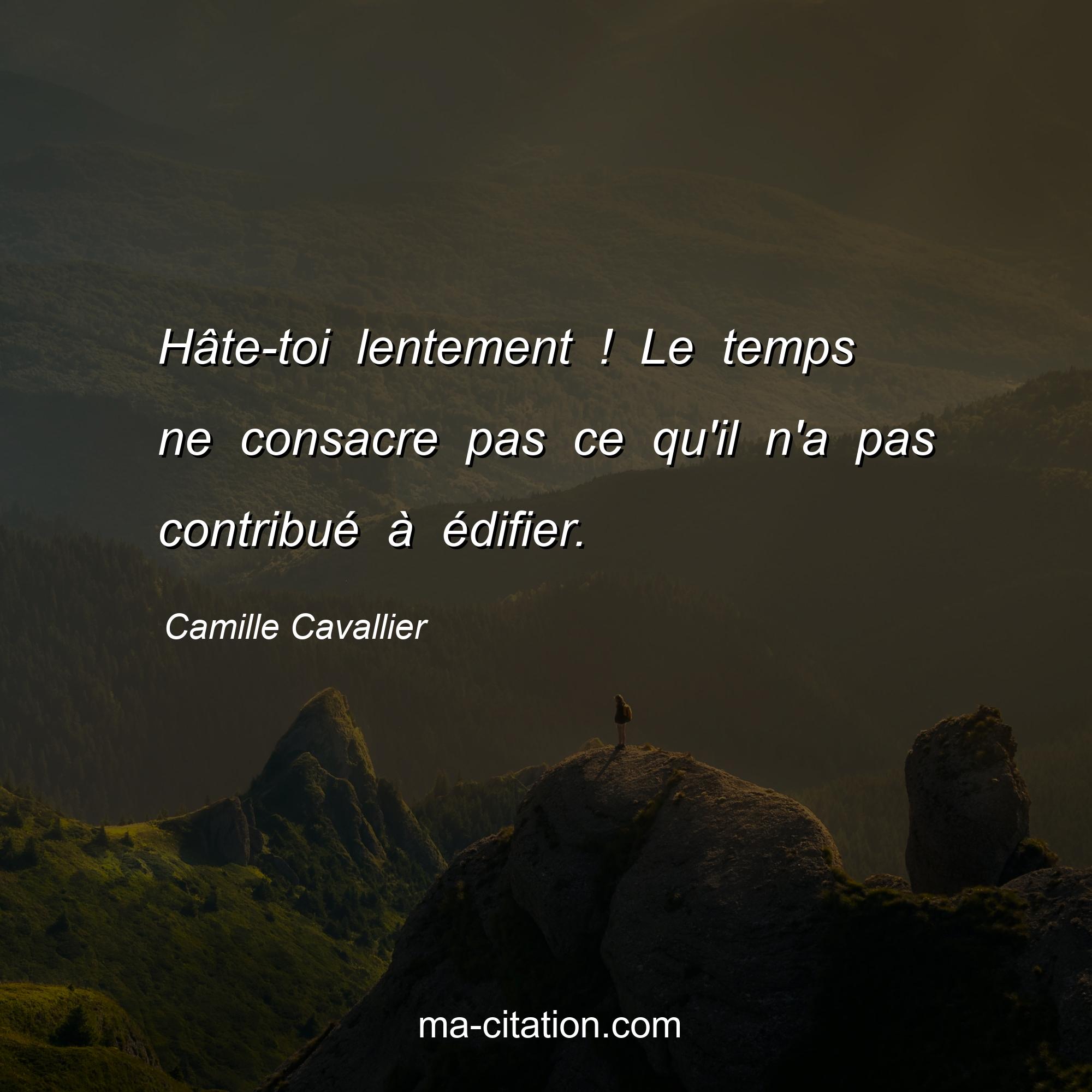 Camille Cavallier est l'auteur de la citation sur la vie "Hâte-toi lentement ! Le temps ne consacre pas ce qu'il n'a pas contribué à édifier.".