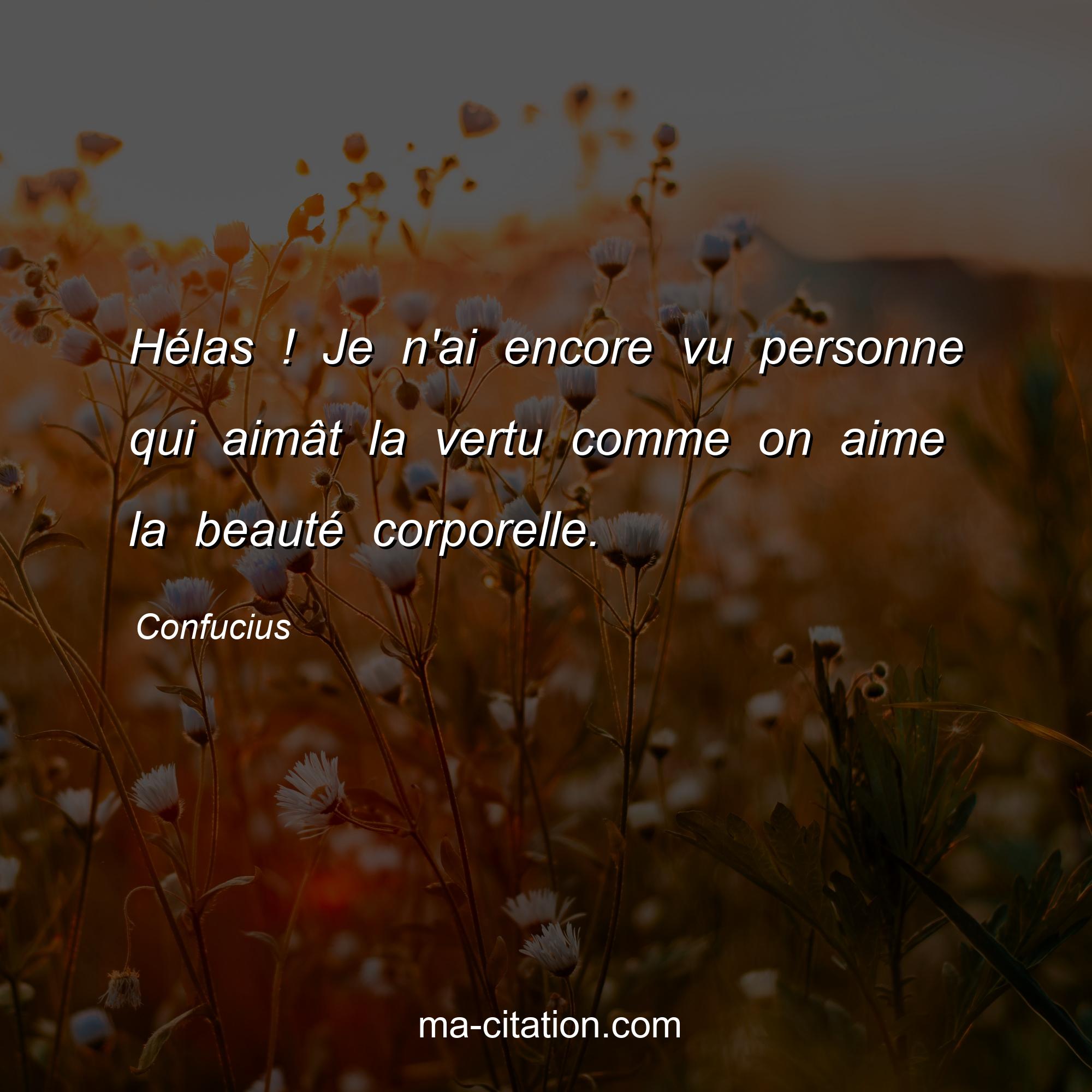 Citation sur la vie de Confucius :Hélas ! Je n'ai encore vu personne qui aimât la vertu comme on aime la beauté corporelle.