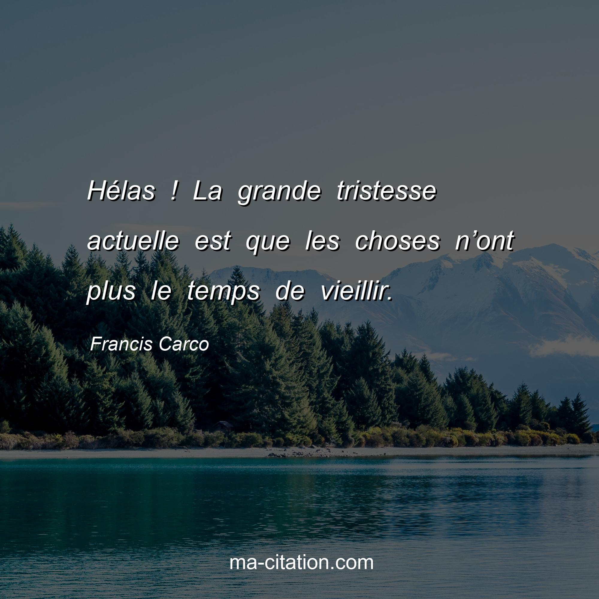 Citation sur la vie de Francis Carco :Hélas ! La grande tristesse actuelle est que les choses n’ont plus le temps de vieillir.