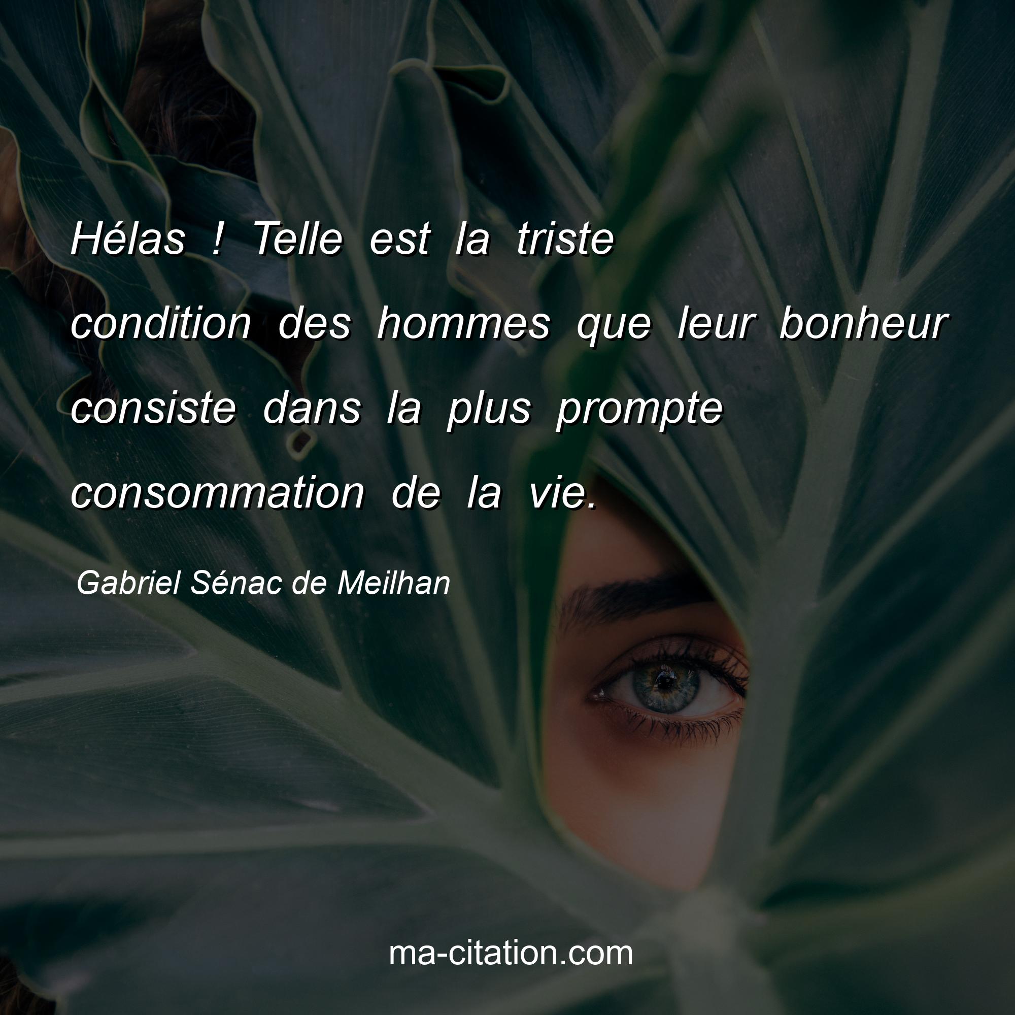 Citation sur la vie de Gabriel Sénac de Meilhan :Hélas ! Telle est la triste condition des hommes que leur bonheur consiste dans la plus prompte consommation de la vie.