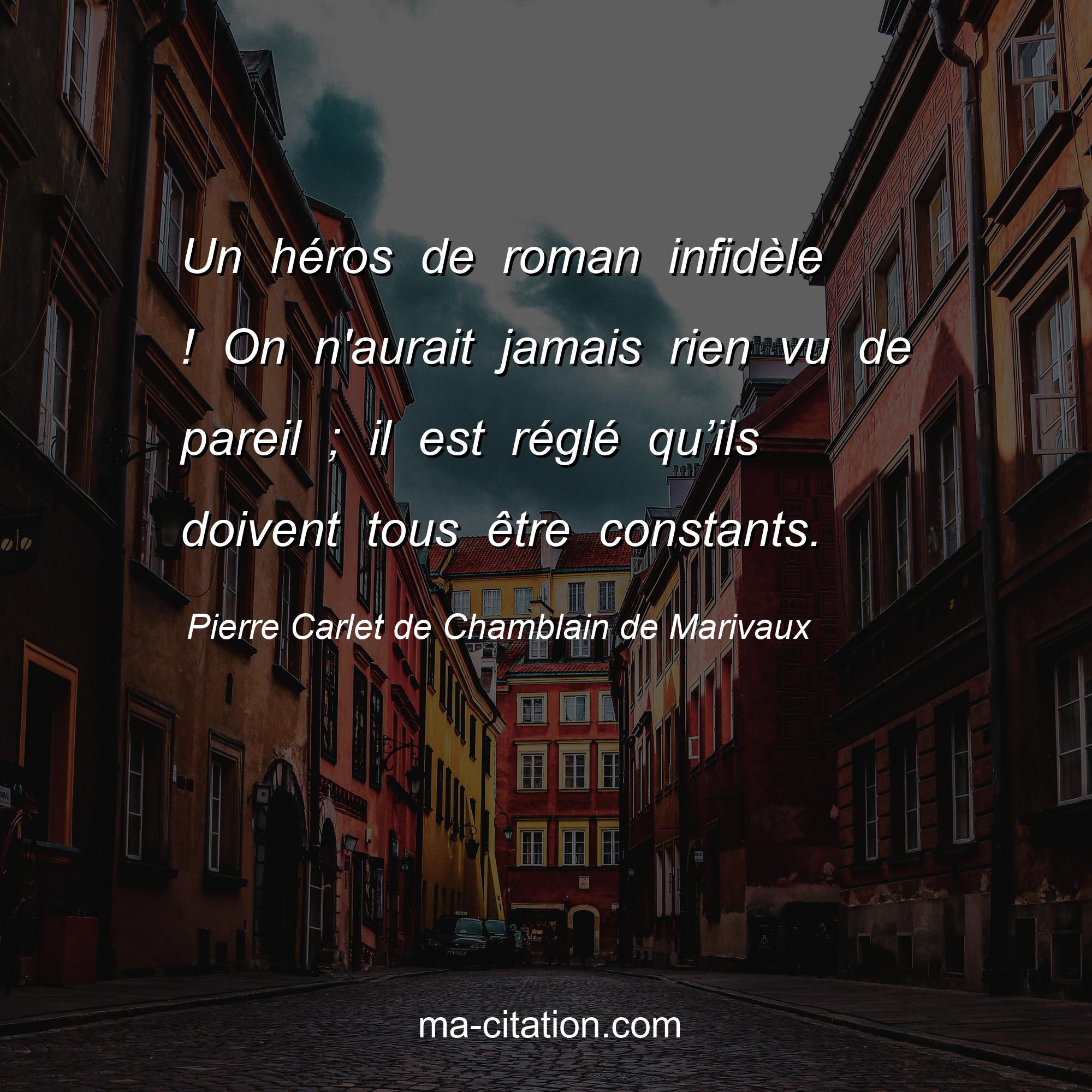 Citation sur la vie de Pierre Carlet de Chamblain de Marivaux :Un héros de roman infidèle ! On n'aurait jamais rien vu de pareil ; il est réglé qu’ils doivent tous être constants.