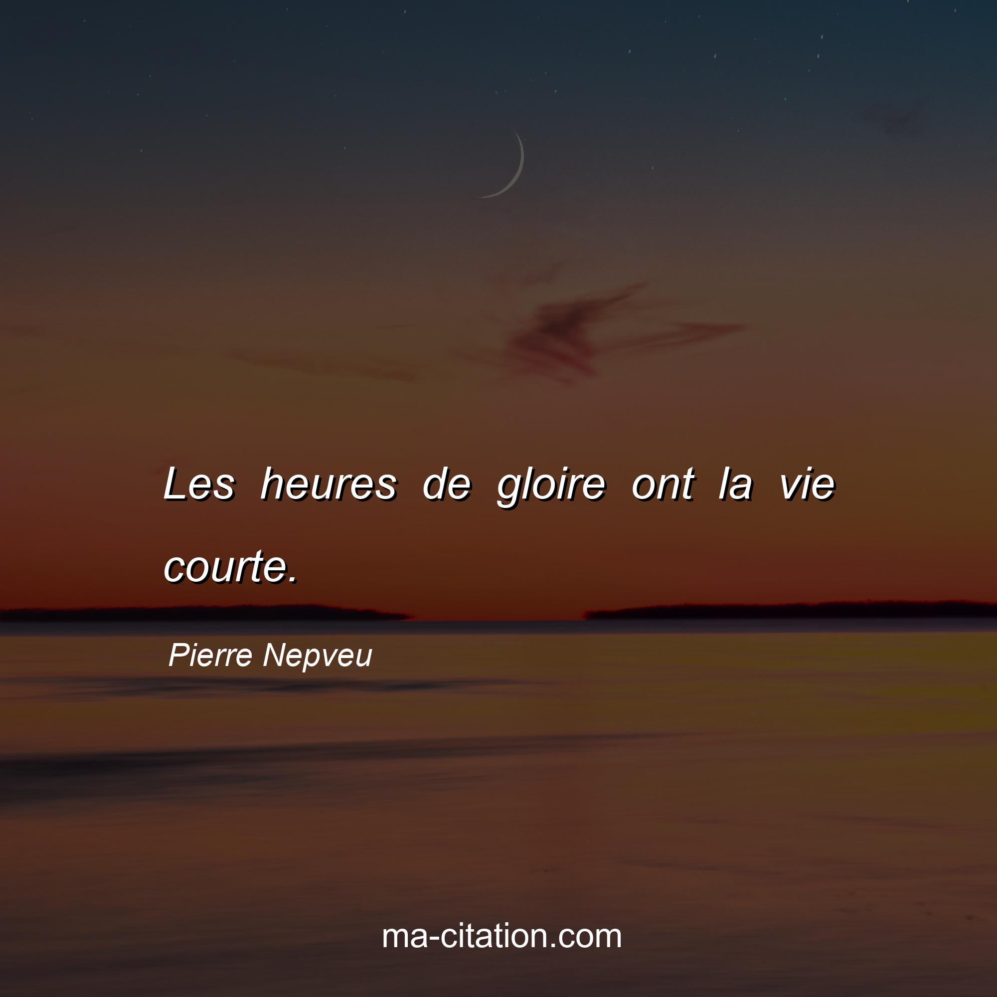 Citation sur la vie de Pierre Nepveu :Les heures de gloire ont la vie courte.