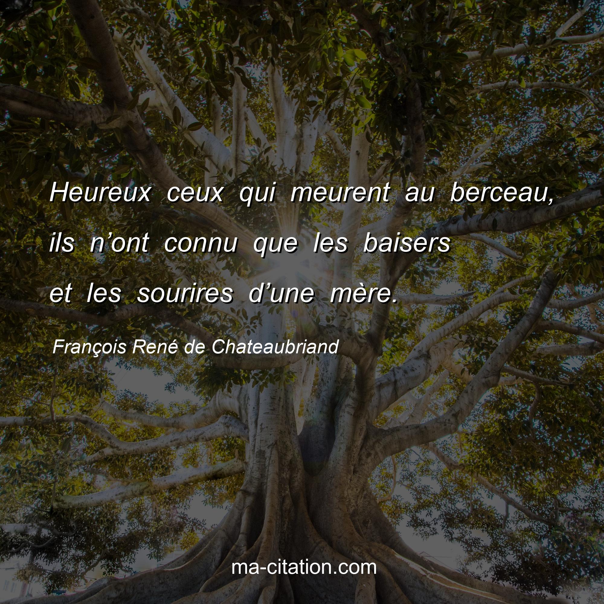 Citation sur la vie de François René de Chateaubriand :Heureux ceux qui meurent au berceau, ils n’ont connu que les baisers et les sourires d’une mère.