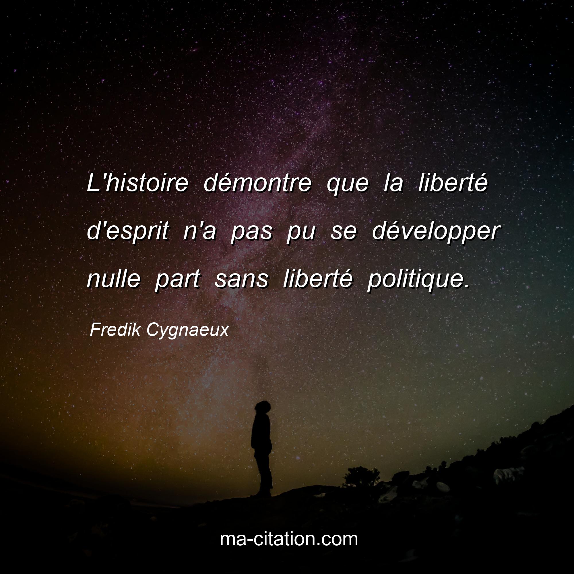 Citation sur la vie de Fredik Cygnaeux :L'histoire démontre que la liberté d'esprit n'a pas pu se développer nulle part sans liberté politique.