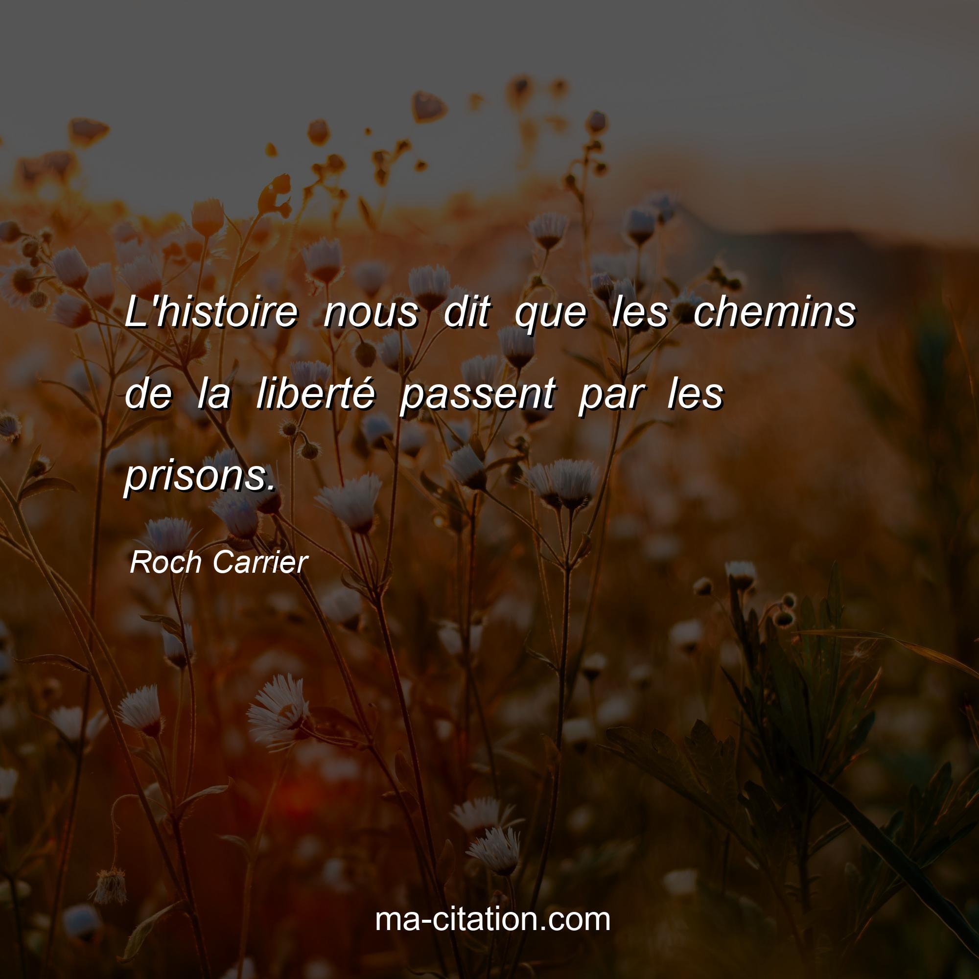 Citation sur la vie de Roch Carrier :L'histoire nous dit que les chemins de la liberté passent par les prisons.