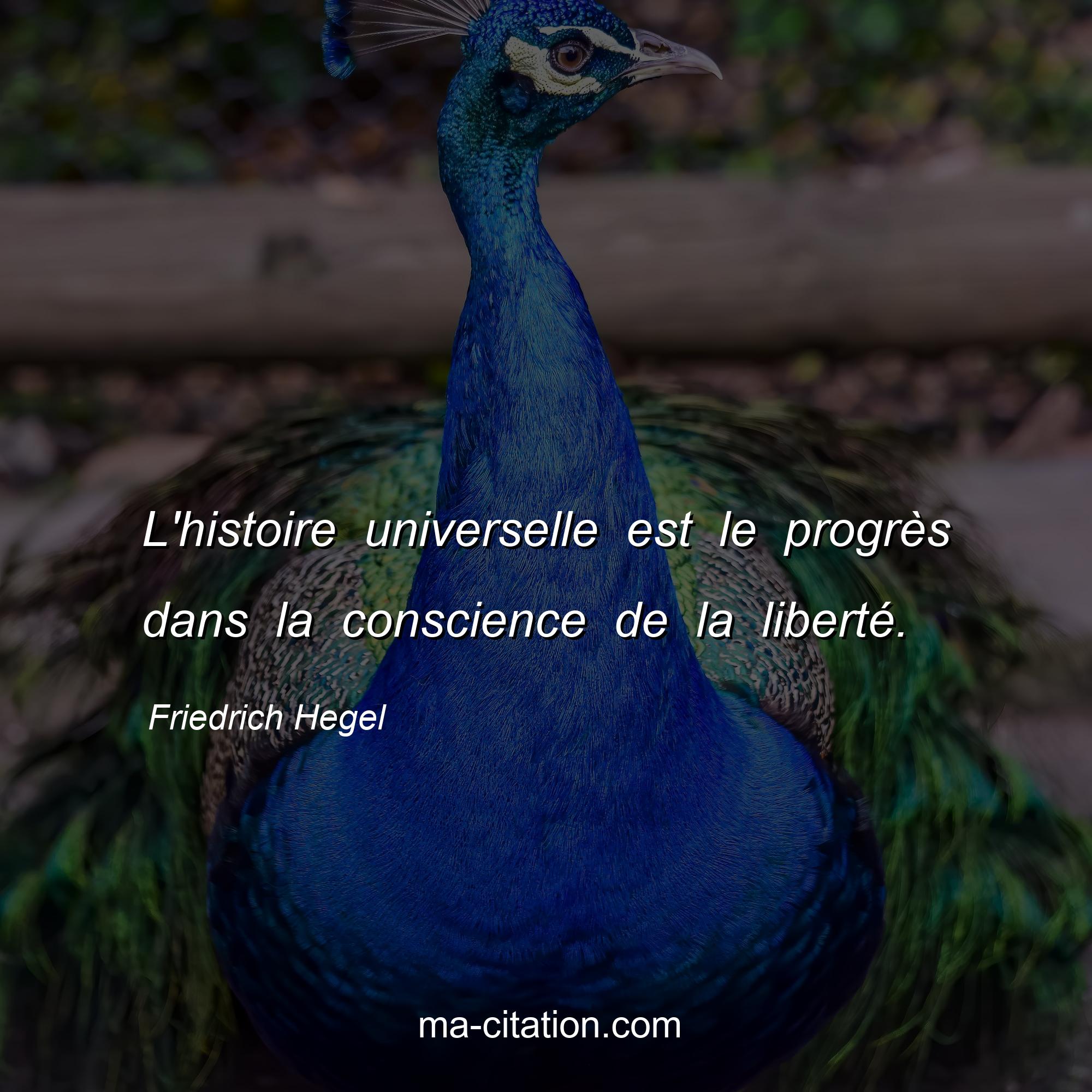 Citation sur la vie de Friedrich Hegel :L'histoire universelle est le progrès dans la conscience de la liberté.