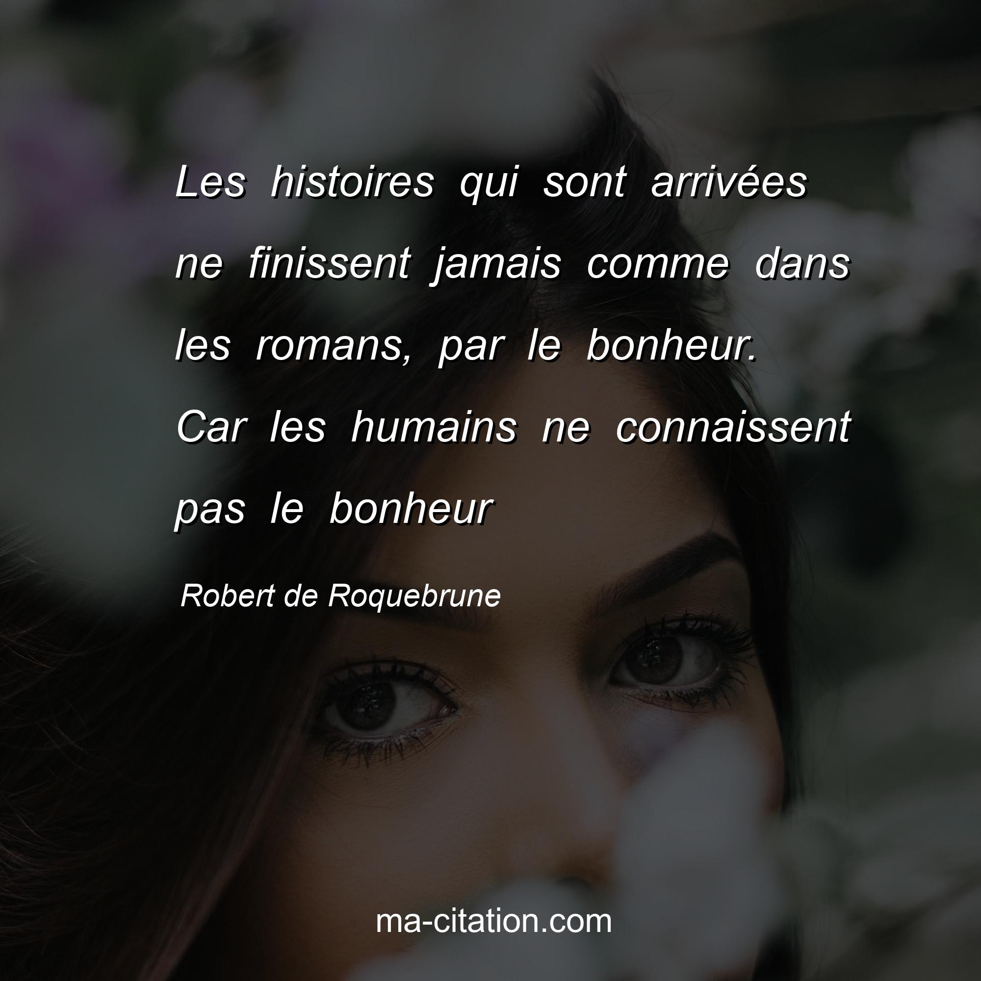 Citation sur la vie de Robert de Roquebrune :Les histoires qui sont arrivées ne finissent jamais comme dans les romans, par le bonheur. Car les humains ne connaissent pas le bonheur