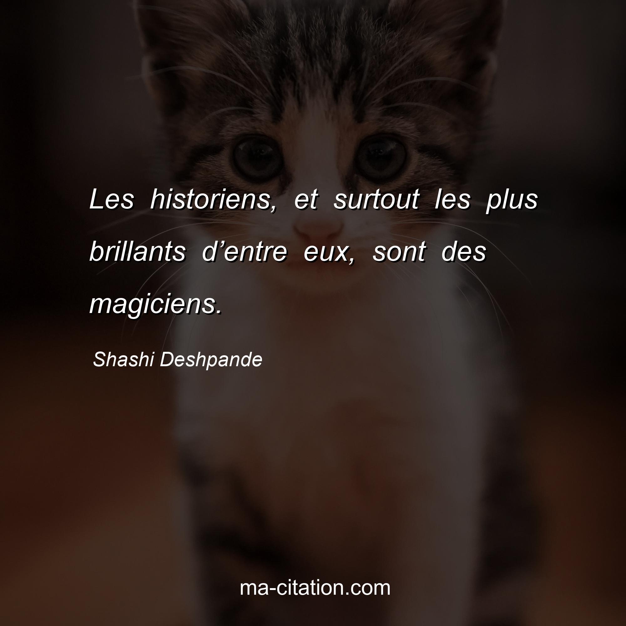Citation sur la vie de Shashi Deshpande :Les historiens, et surtout les plus brillants d’entre eux, sont des magiciens.