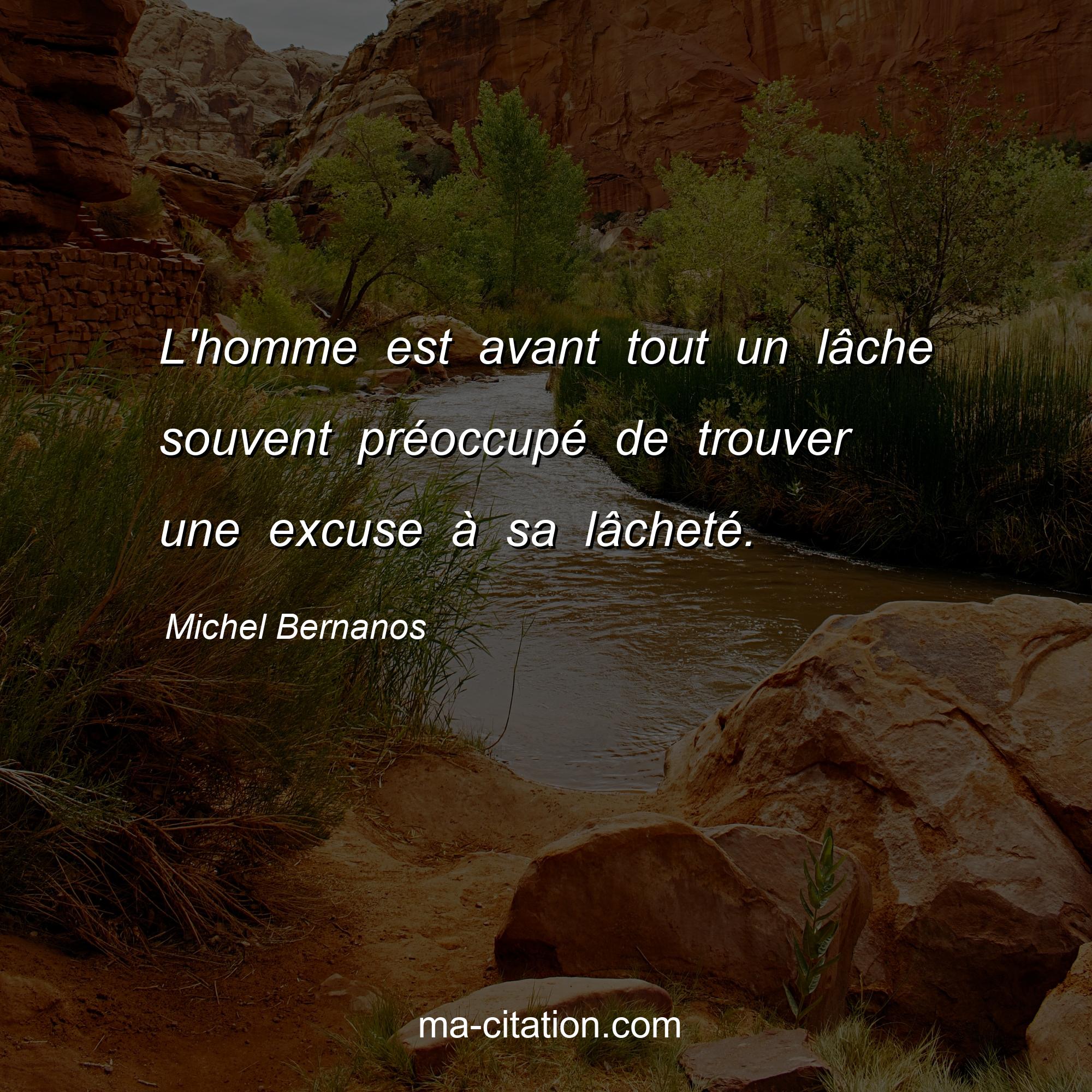 Citation sur la vie de Michel Bernanos :L'homme est avant tout un lâche souvent préoccupé de trouver une excuse à sa lâcheté.