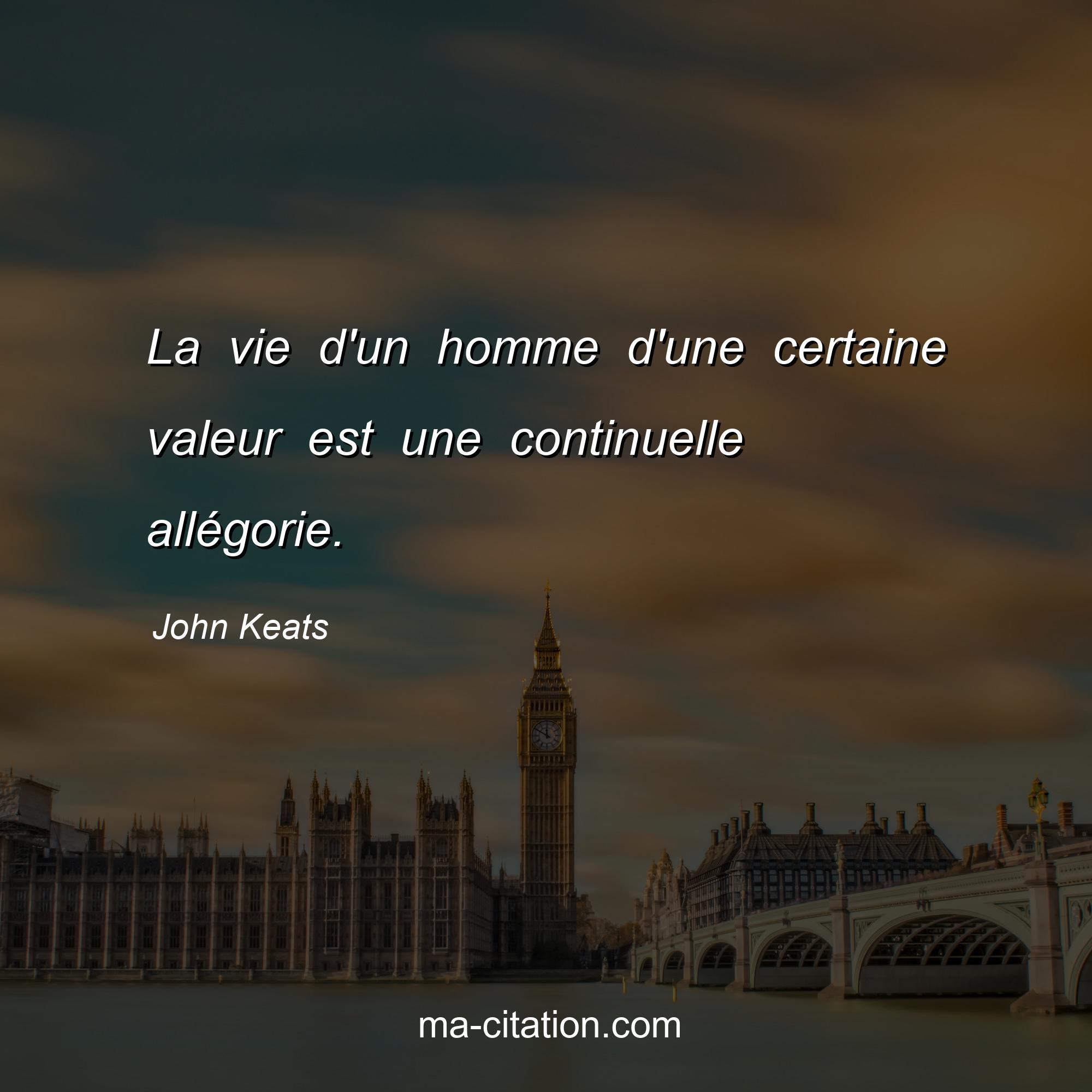 Citation sur la vie de John Keats :La vie d'un homme d'une certaine valeur est une continuelle allégorie.