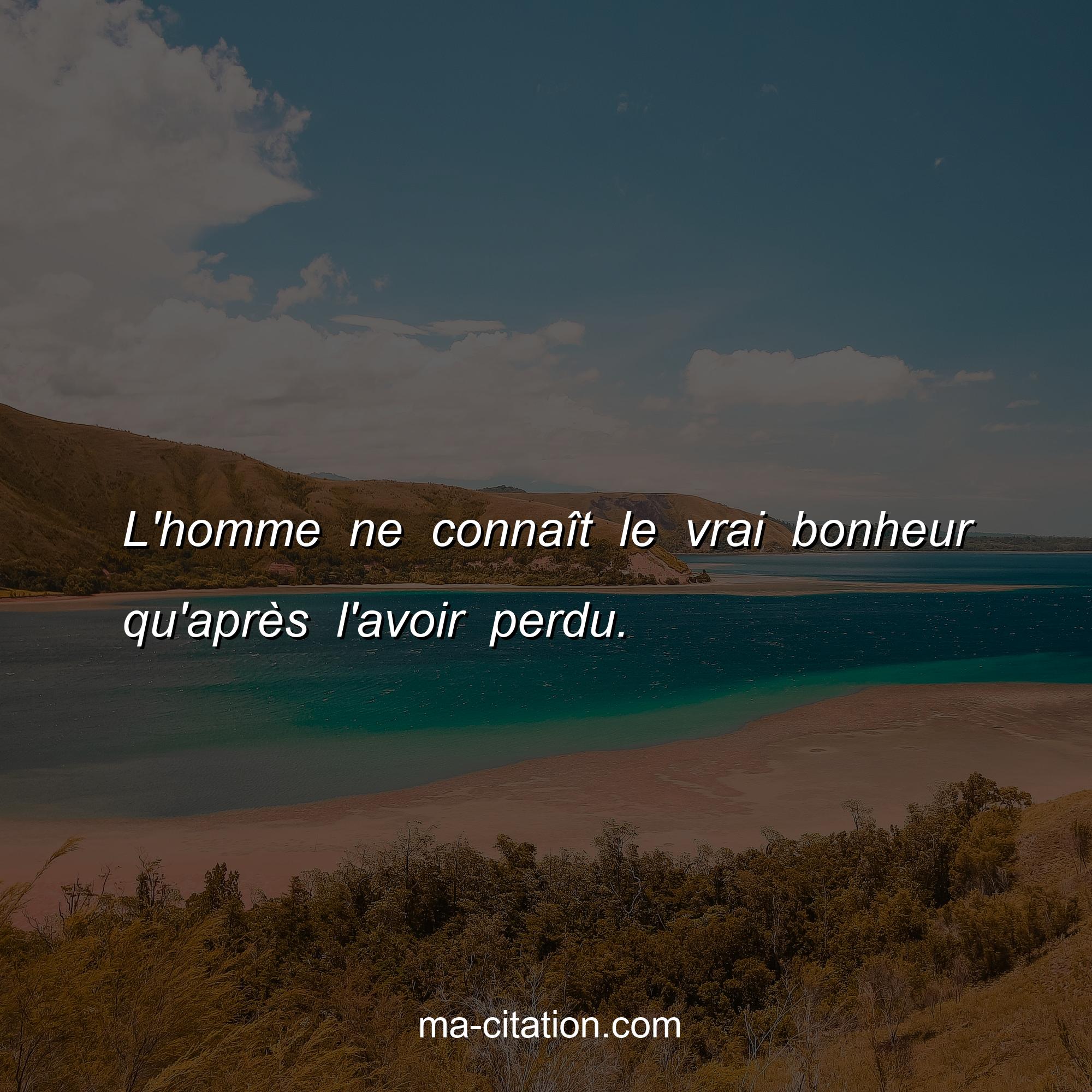 Citation sur la vie :L'homme ne connaît le vrai bonheur qu'après l'avoir perdu.