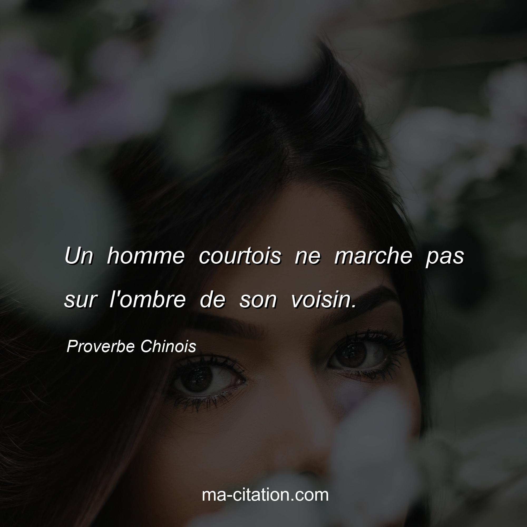 Proverbe Chinois sur la vie :Un homme courtois ne marche pas sur l'ombre de son voisin.