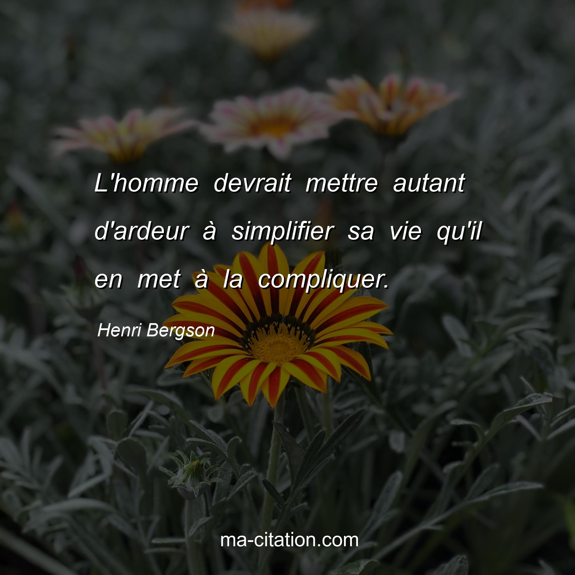 Citation sur la vie de Henri Bergson :L'homme devrait mettre autant d'ardeur à simplifier sa vie qu'il en met à la compliquer.