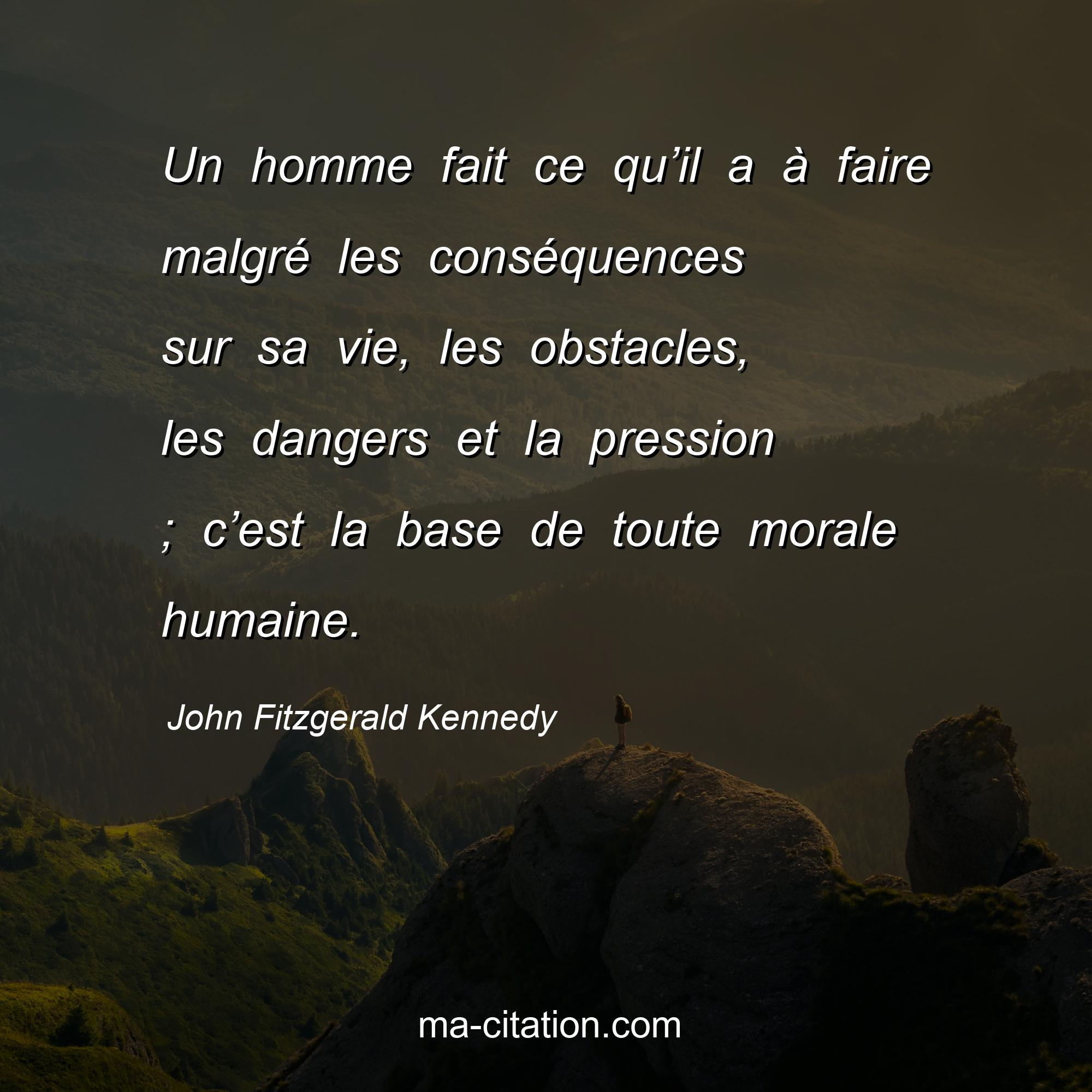 Citation sur la vie de John Fitzgerald Kennedy :Un homme fait ce qu’il a à faire malgré les conséquences sur sa vie, les obstacles, les dangers et la pression ; c’est la base de toute morale humaine.