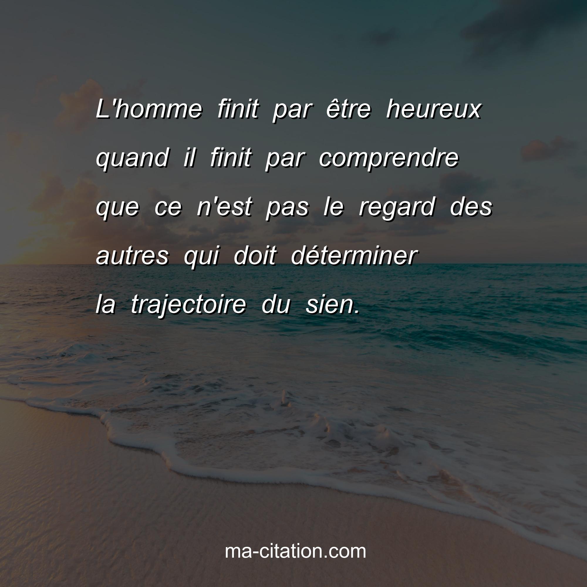 L'homme finit par être heureux quand il finit par comprendre que ce n'est pas le regard des autres qui doit déterminer la trajectoire du sien.