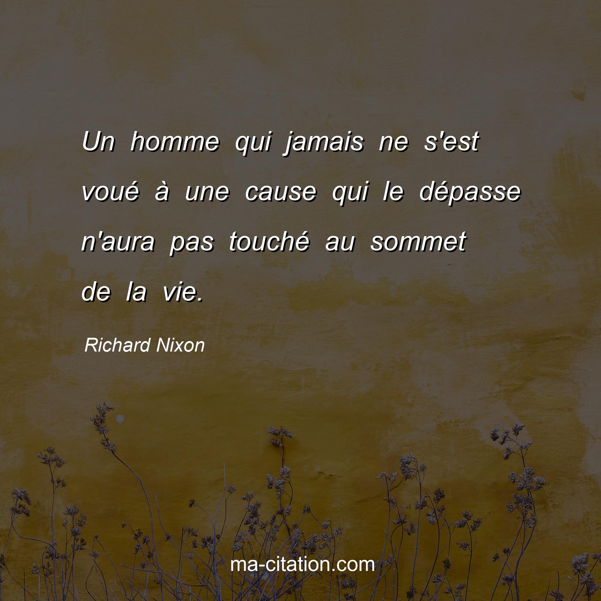 Richard Nixon est l'auteur de la citation sur la vie "Un homme qui jamais ne s'est voué à une cause qui le dépasse n'aura pas touché au sommet de la vie.".