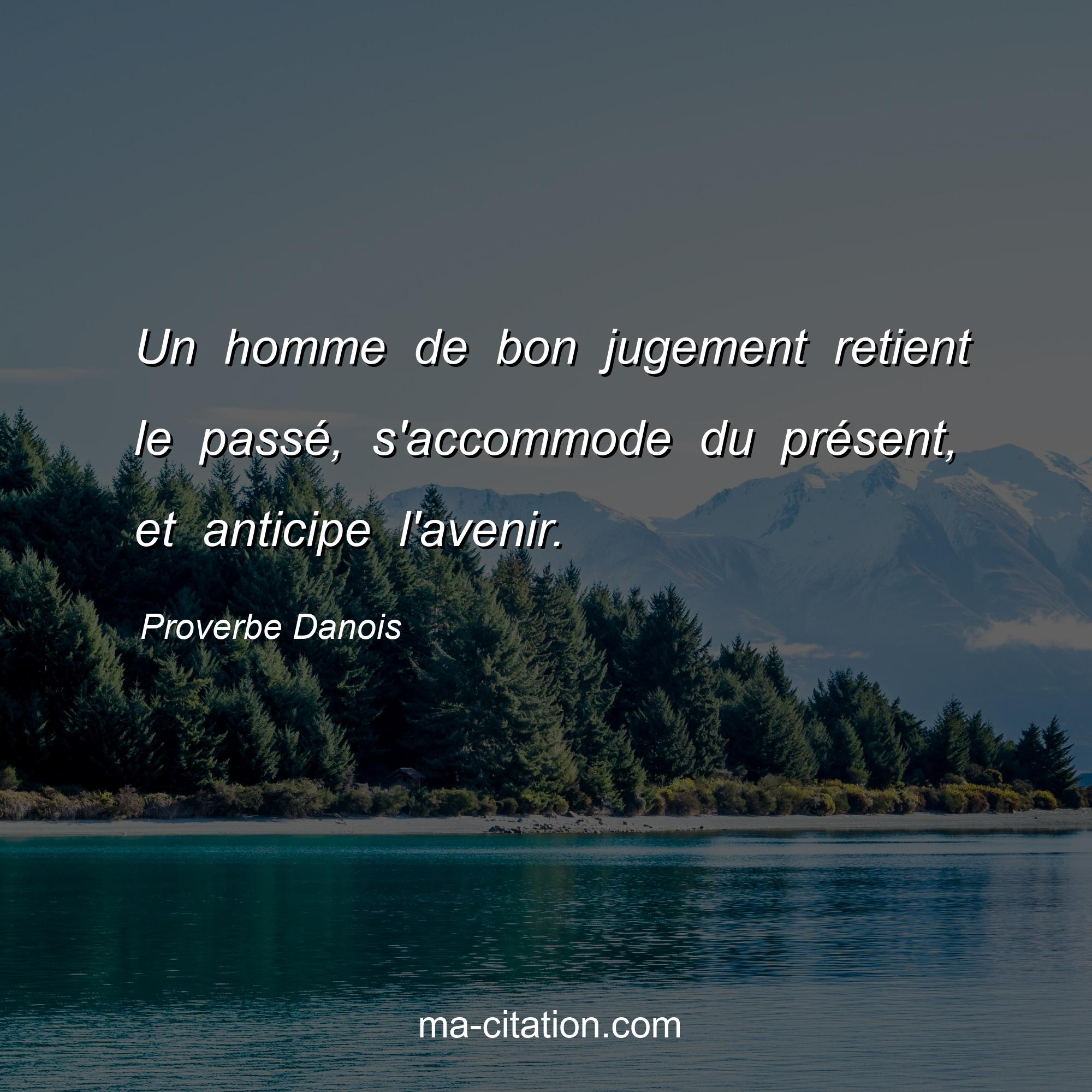 Proverbe Danois sur la vie :Un homme de bon jugement retient le passé, s'accommode du présent, et anticipe l'avenir.