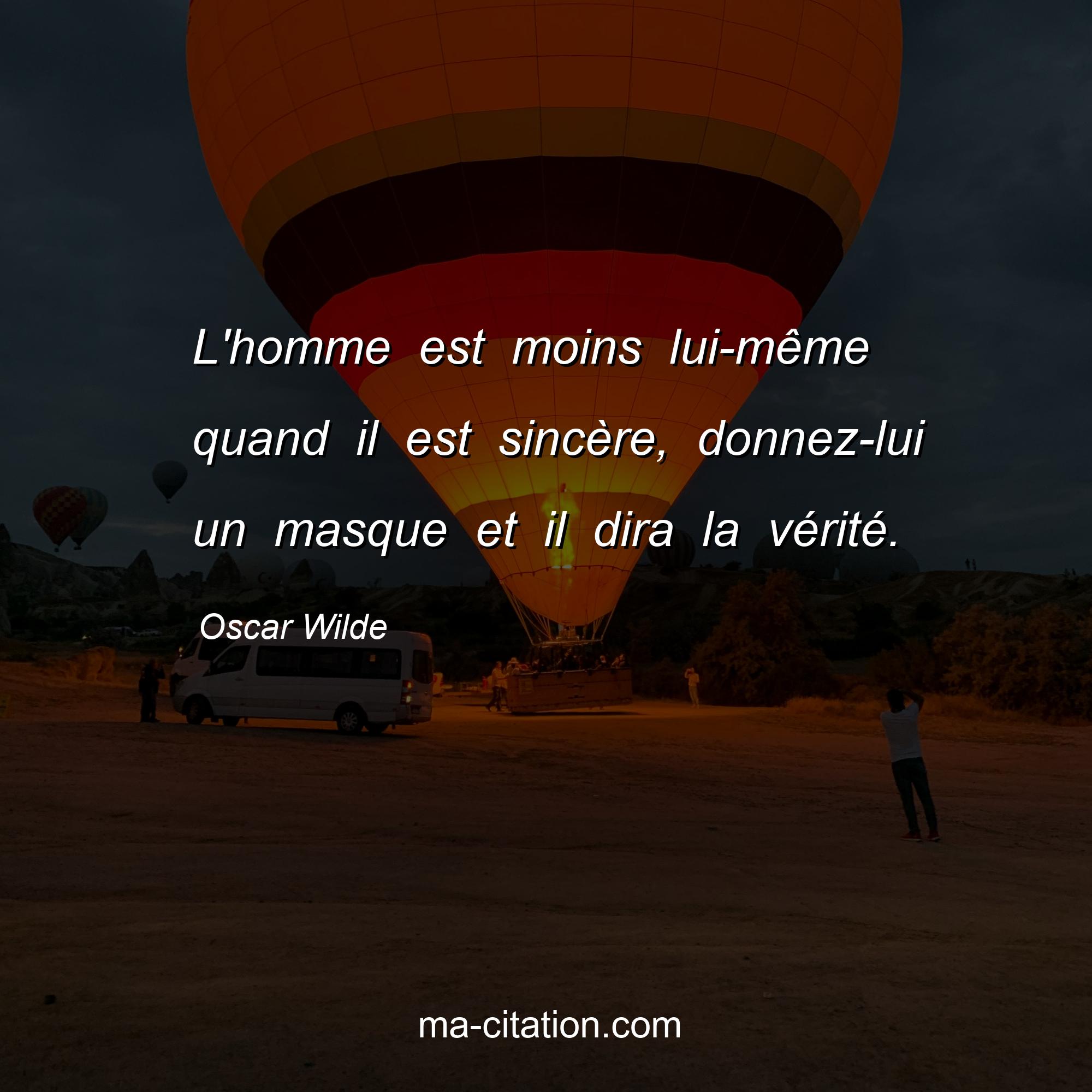 Citation sur la vie d'Oscar Wilde :L'homme est moins lui-même quand il est sincère, donnez-lui un masque et il dira la vérité.