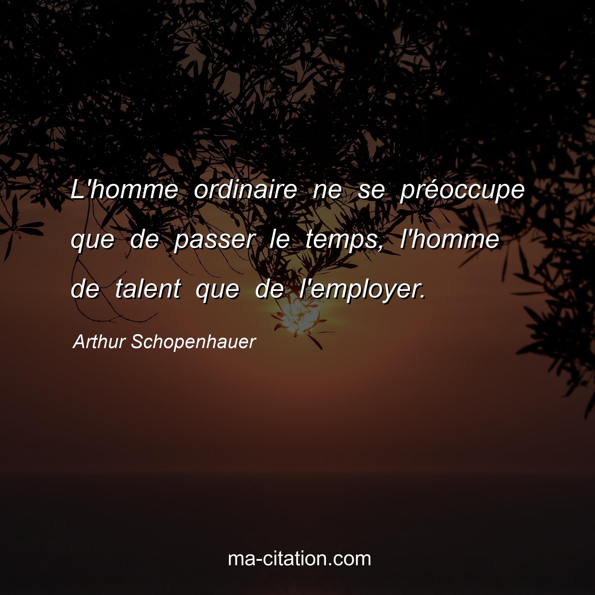Citation sur la vie d'Arthur Schopenhauer :L'homme ordinaire ne se préoccupe que de passer le temps, l'homme de talent que de l'employer.
