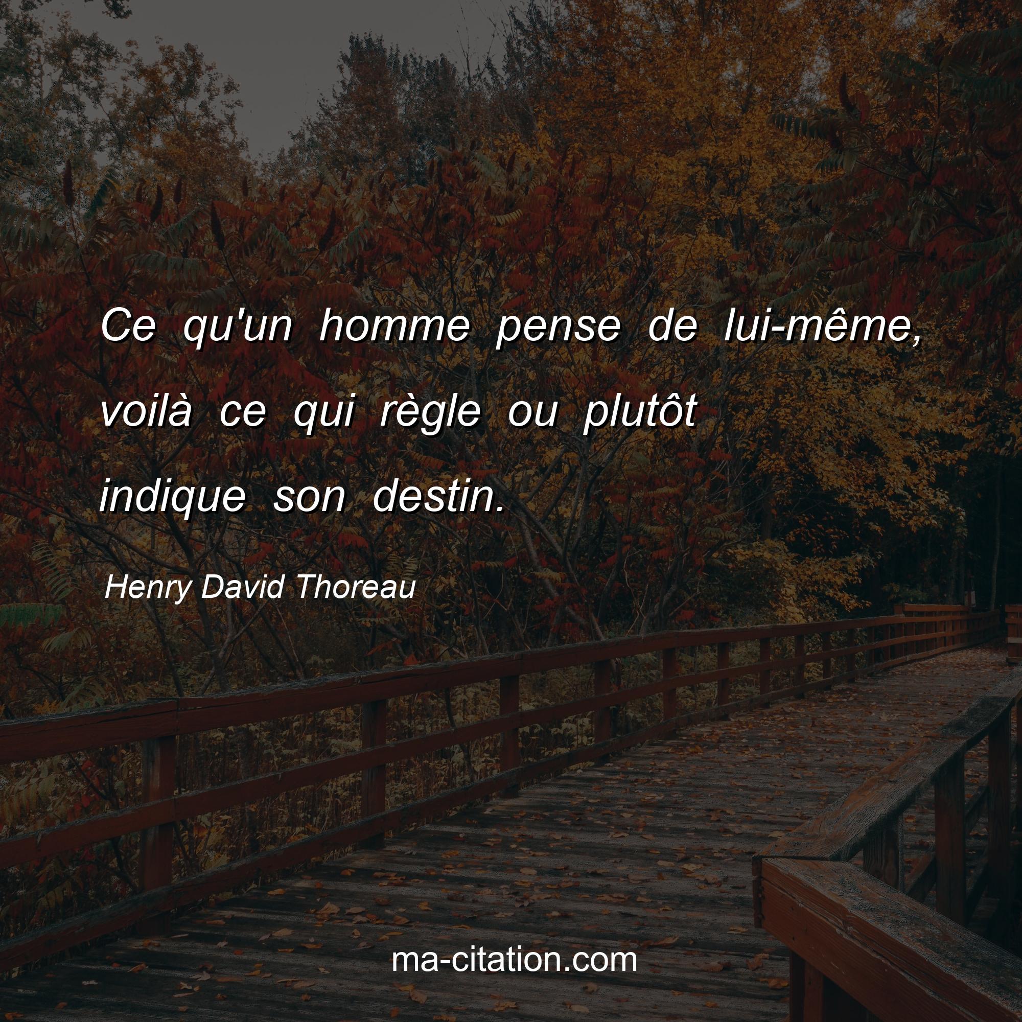 Citation sur la vie de Henry David Thoreau :Ce qu'un homme pense de lui-même, voilà ce qui règle ou plutôt indique son destin.