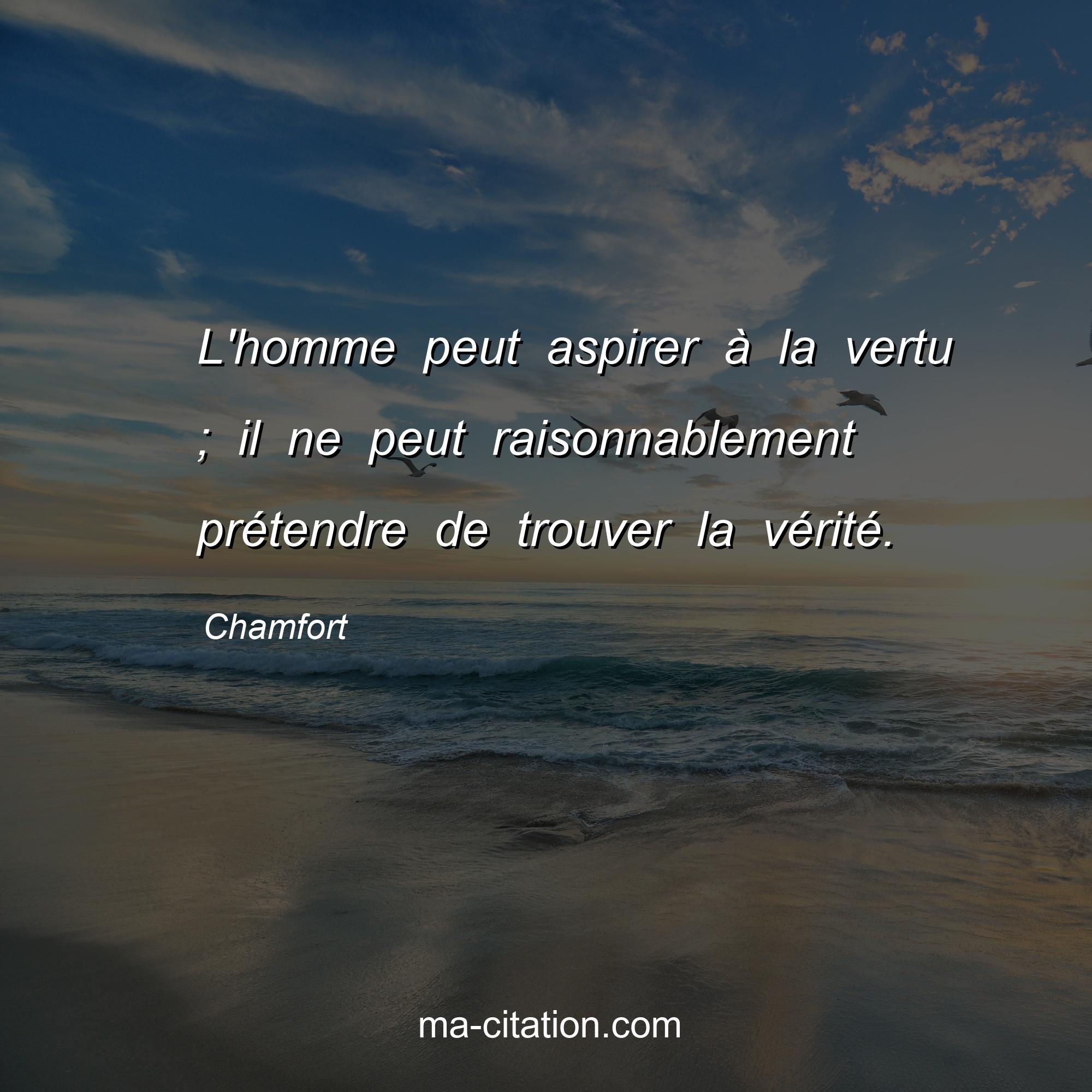 Citation sur la vie de Chamfort :L'homme peut aspirer à la vertu ; il ne peut raisonnablement prétendre de trouver la vérité.