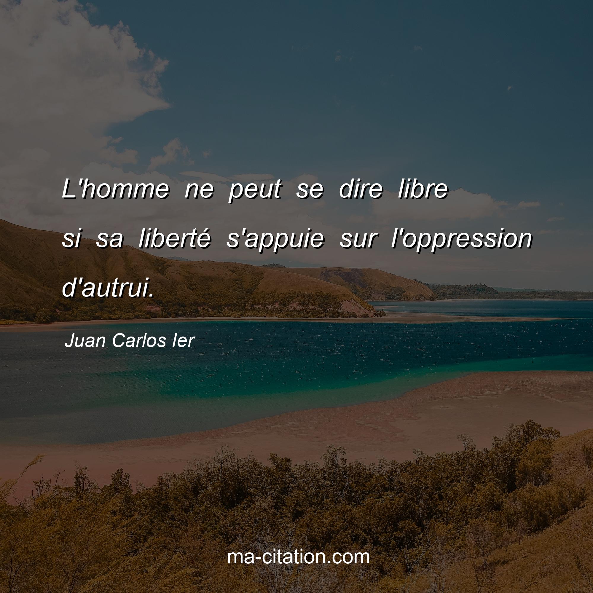 Citation sur la vie de Juan Carlos Ier :L'homme ne peut se dire libre si sa liberté s'appuie sur l'oppression d'autrui.