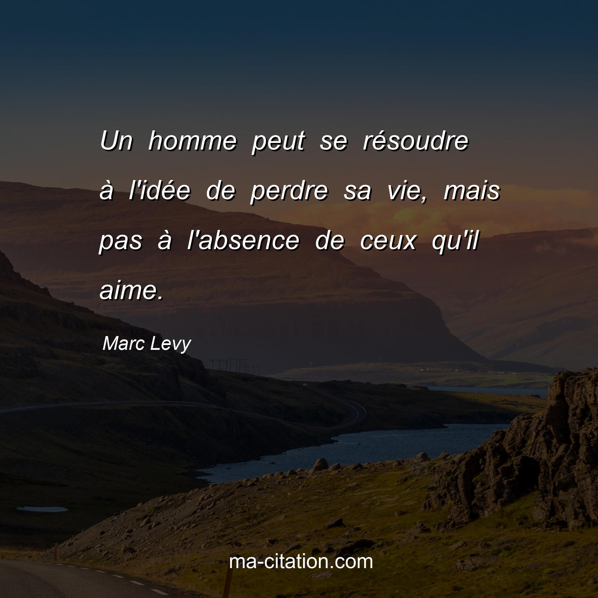 Citation sur la vie de Marc Levy :Un homme peut se résoudre à l'idée de perdre sa vie, mais pas à l'absence de ceux qu'il aime.