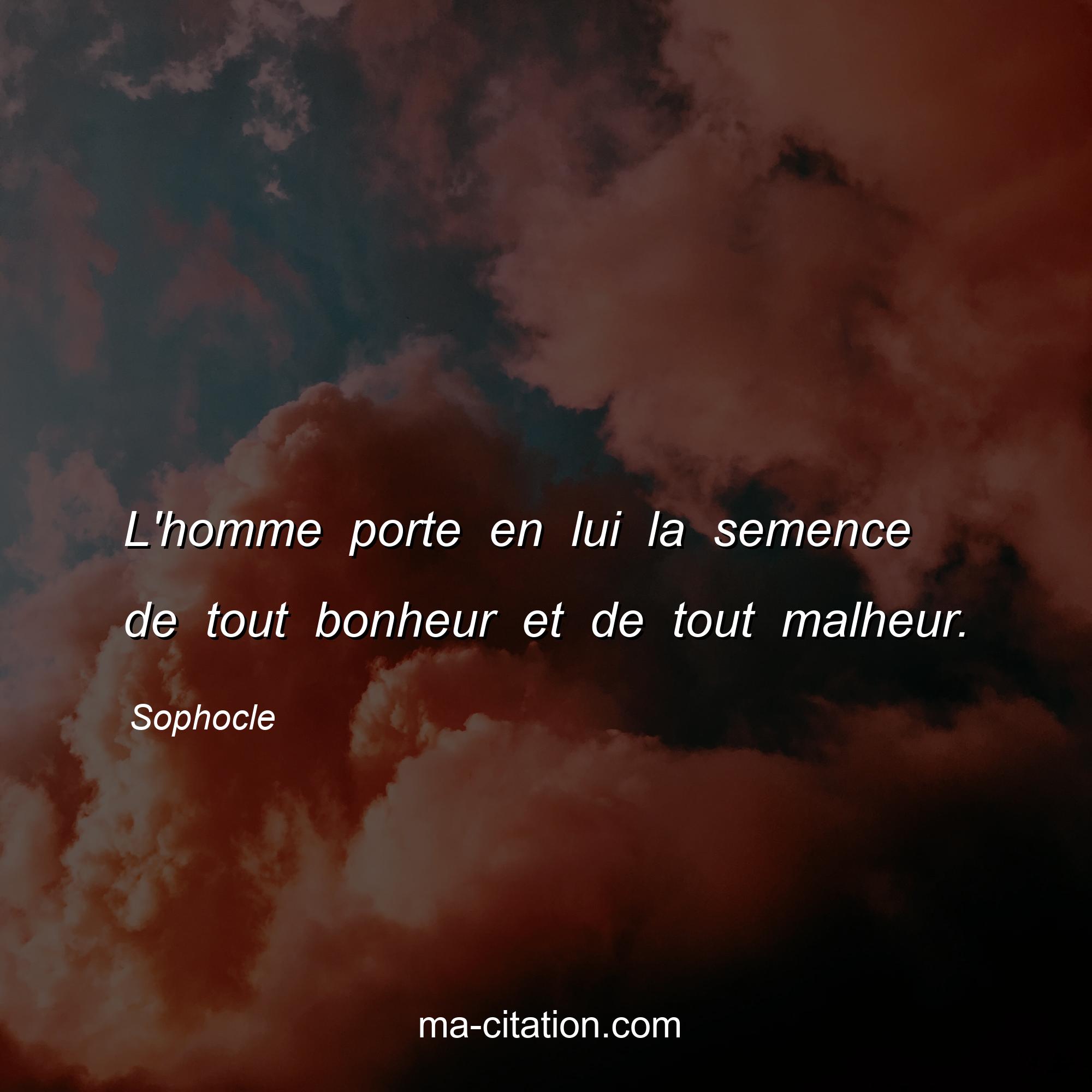 Citation sur la vie de Sophocle :L'homme porte en lui la semence de tout bonheur et de tout malheur.