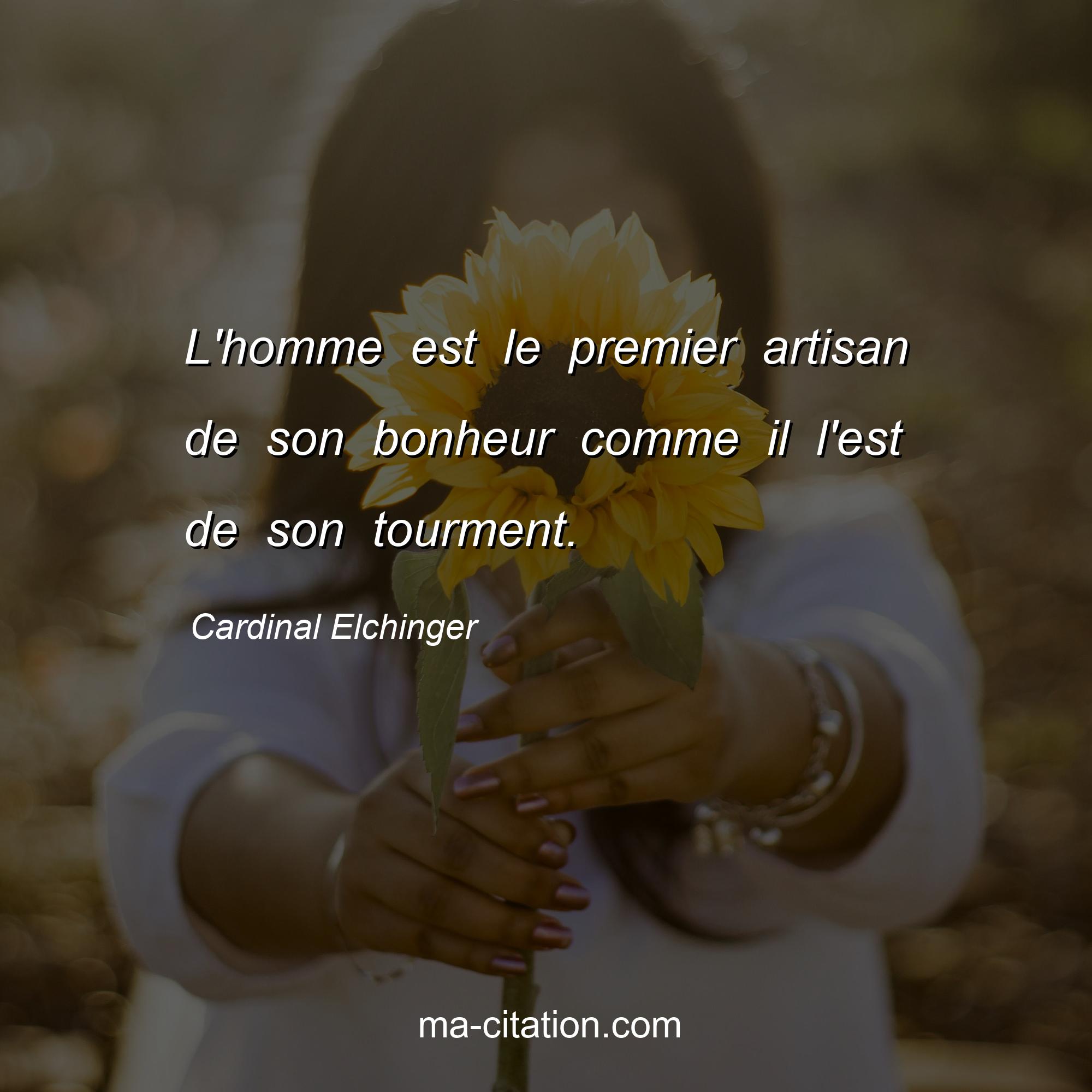Citation sur la vie de Cardinal Elchinger :L'homme est le premier artisan de son bonheur comme il l'est de son tourment.