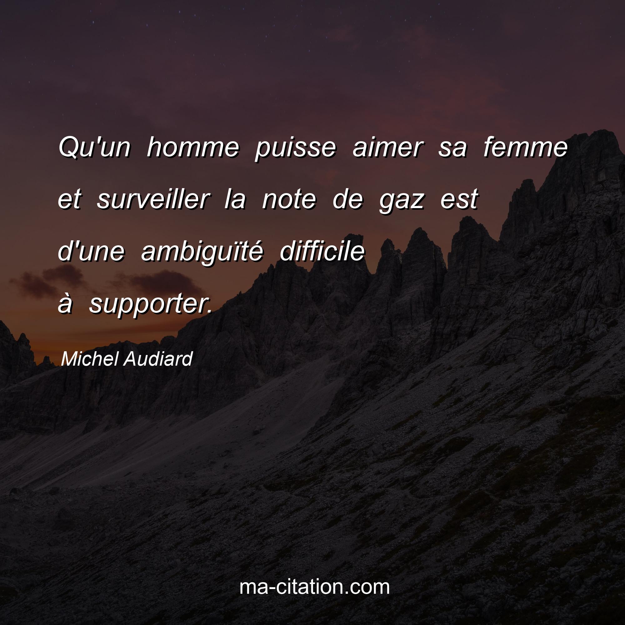 Citation sur la vie de Michel Audiard :Qu'un homme puisse aimer sa femme et surveiller la note de gaz est d'une ambiguïté difficile à supporter.