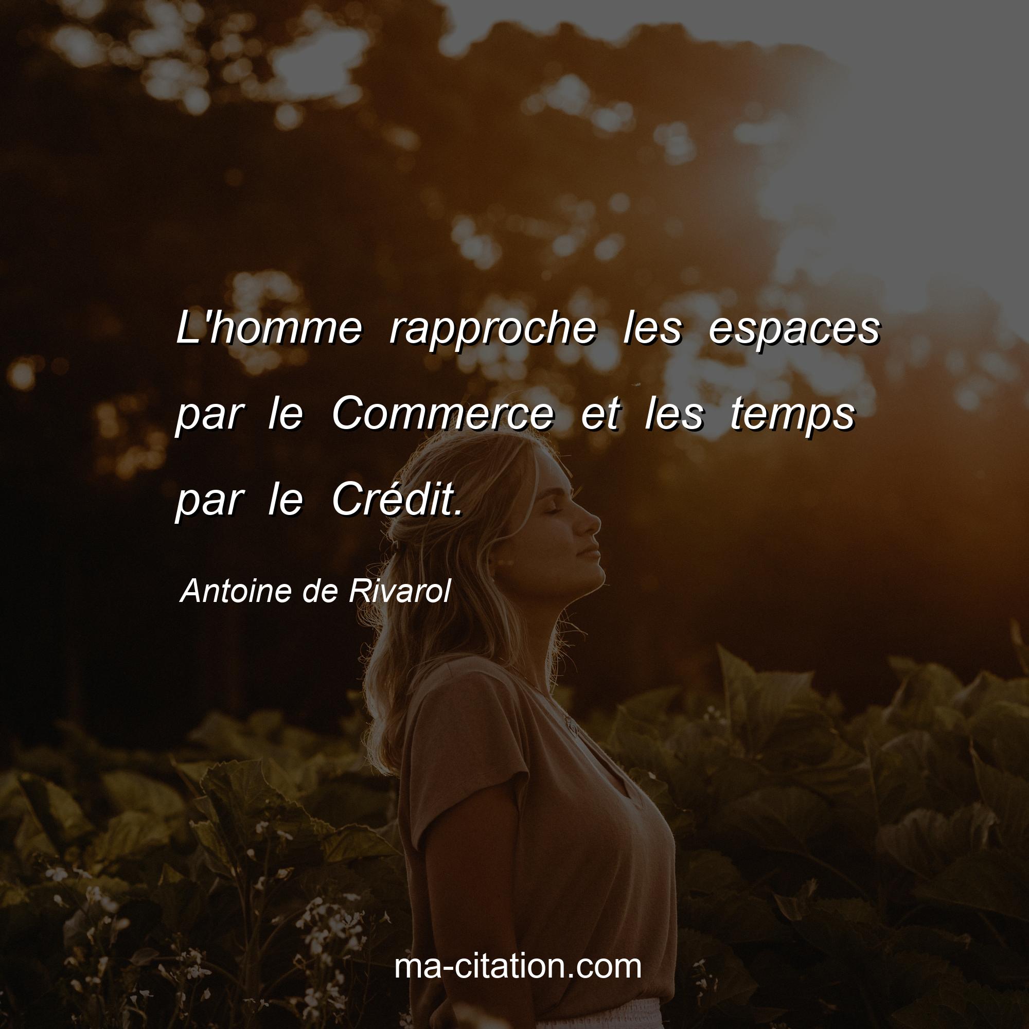 Citation sur la vie d'Antoine de Rivarol :L'homme rapproche les espaces par le Commerce et les temps par le Crédit.