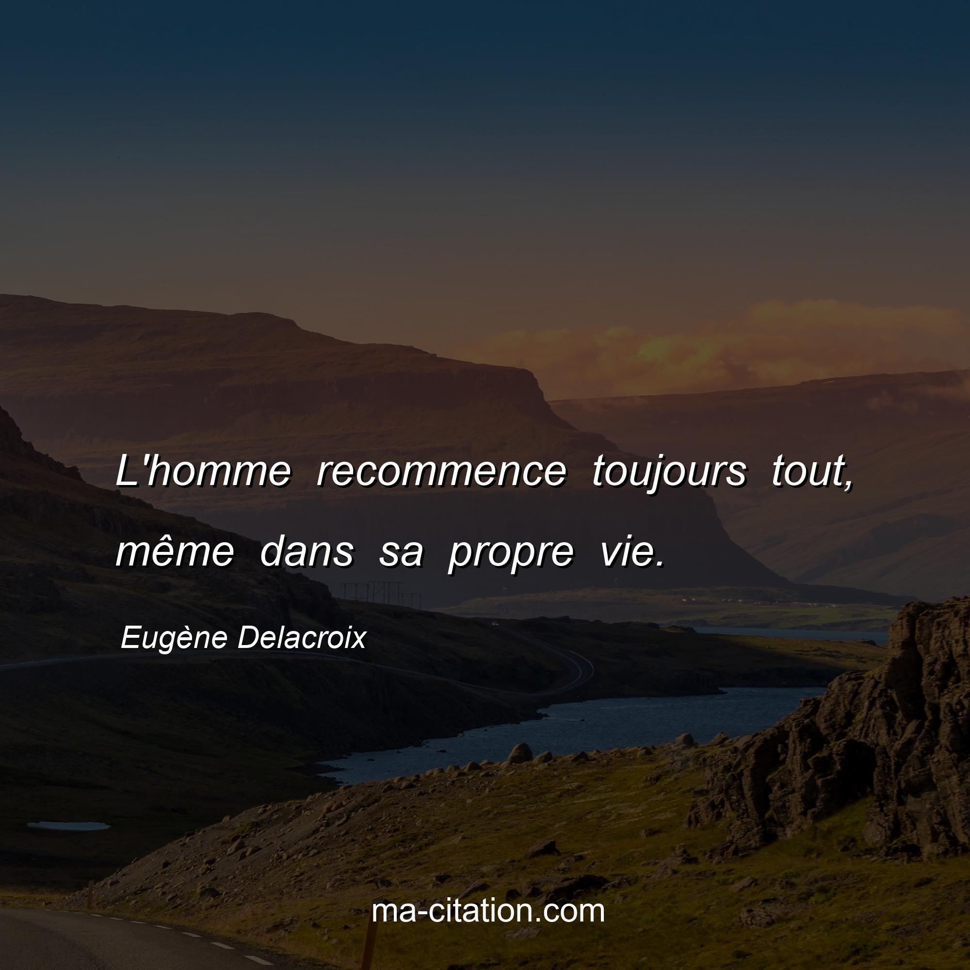 Eugène Delacroix est l'auteur de la citation sur la vie "L'homme recommence toujours tout, même dans sa propre vie.".